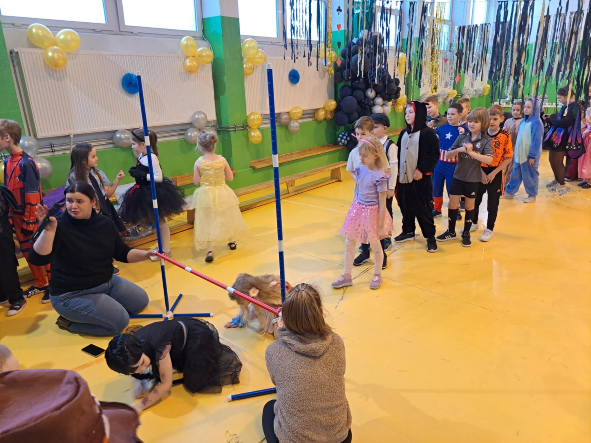 O wspaniałą zabawę zadbali animatorzy z „Świata Bajek- Żywa Maskotka”, którzy przygotowali dla dzieci liczne atrakcje. Uczniowie chętnie brali udział w tańcach, zabawach ruchowych oraz konkursach, które dostarczyły im wiele radości i śmiechu. Ogromną niespodzianką była również żywa maskotka, z którą dzieci mogły się bawić, tańczyć oraz robić pamiątkowe zdjęcia.