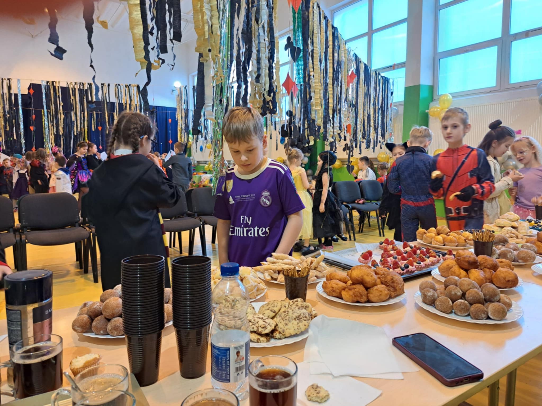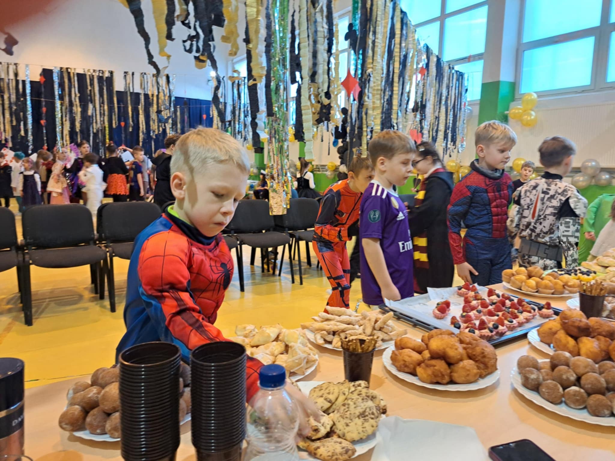 Dodatkową atrakcją był poczęstunek, przygotowany z ogromnym zaangażowaniem przez Radę Rodziców, za co serdecznie dziękujemy. Słodkie przekąski i napoje pozwoliły dzieciom nabrać energii do dalszej zabawy.