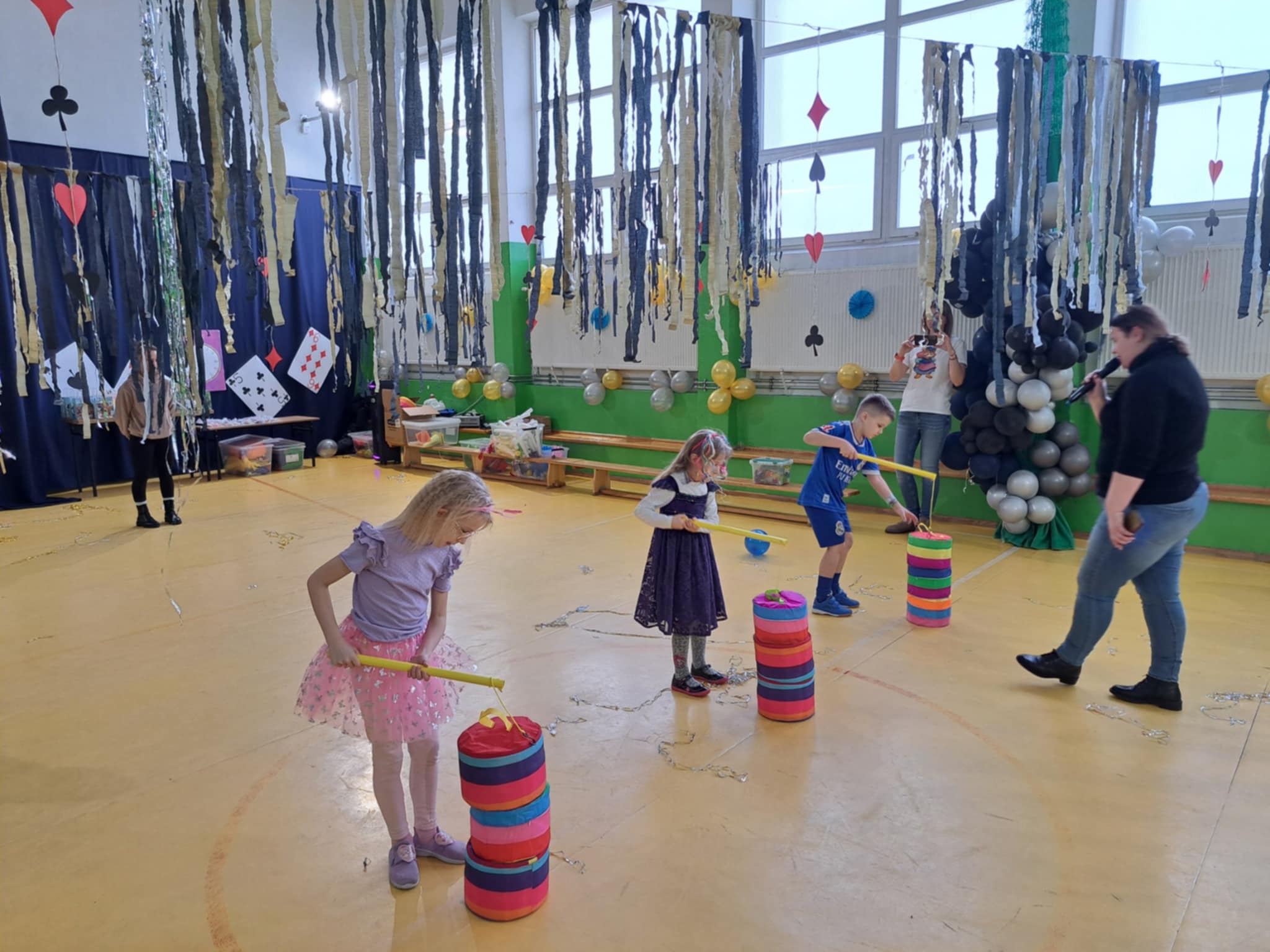Podczas balu nie zabrakło konkursów z nagrodami, które wzbudziły wiele emocji i pozytywnej rywalizacji. Każde dziecko mogło poczuć się wyjątkowo, a uśmiechy nie znikały z twarzy uczestników przez cały czas trwania imprezy.