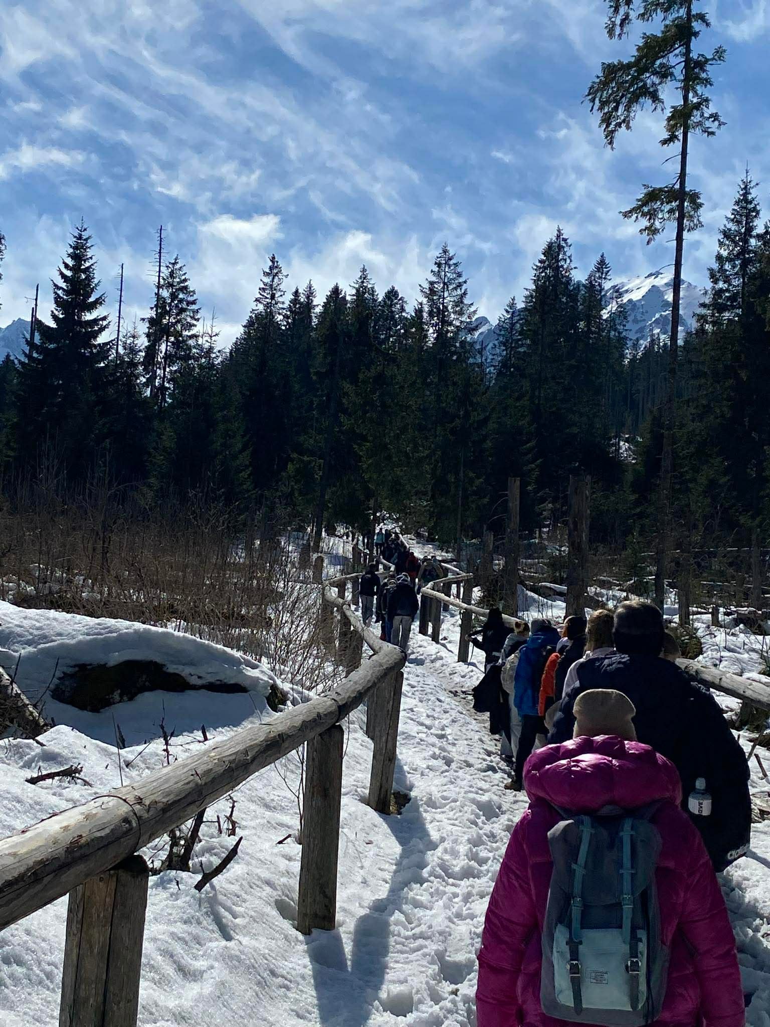 Trzeci dzień był wyjątkowo intensywny. Wyruszyliśmy do Zakopane, gdzie wjechaliśmy kolejką na Kasprowy Wierch. Rozciągające się stamtąd widoki na Tatry zrobiły na wszystkich ogromne wrażenie. Tego samego dnia udaliśmy się pieszo do Morskiego Oka. Podczas wędrówki przewodnik dzielił się ciekawostkami o górach i ich historii. Był to wymagający, ale bardzo satysfakcjonujący dzień — pokonaliśmy aż 28 kilometrów.
