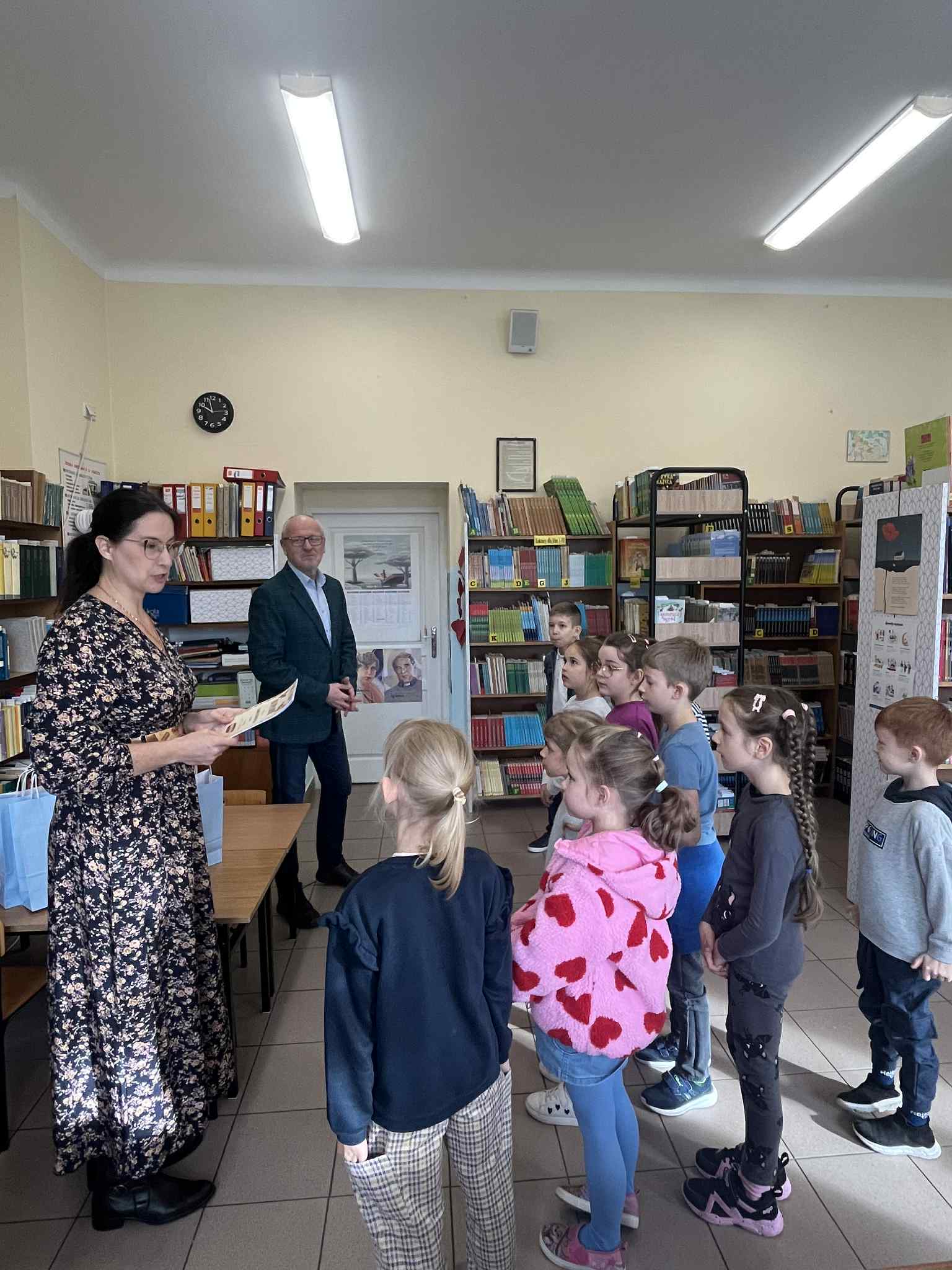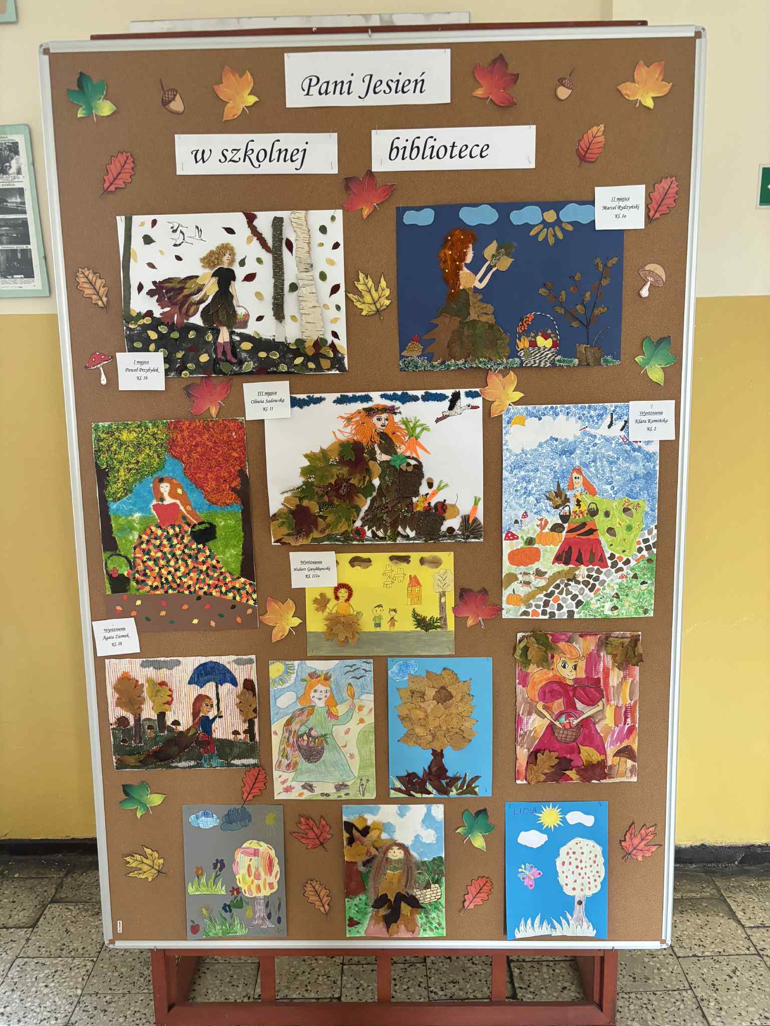 Biblioteka szkolna zaprosiła uczniów do udziału w konkursie poetycko-plastycznym, który polegał na wykonaniu ilustracji do wiersza „Idzie jesień”. Celem konkursu było rozbudzanie u dzieci twórczej inwencji, kreatywności i wrażliwości estetycznej inspirowanych pięknem poezji.