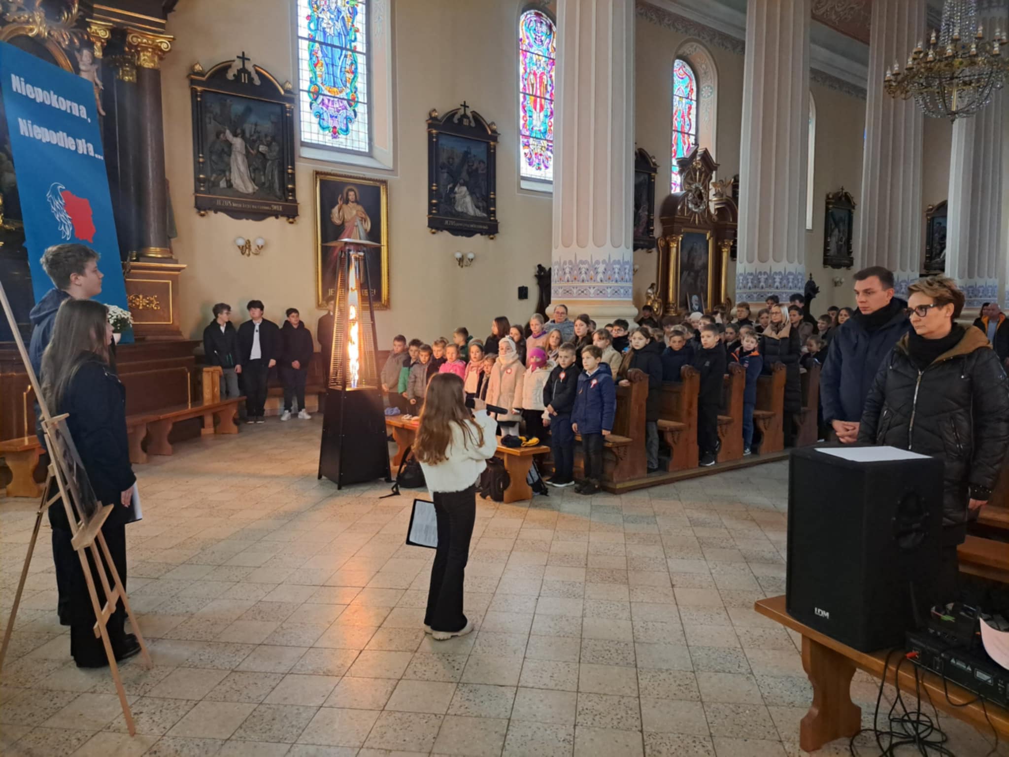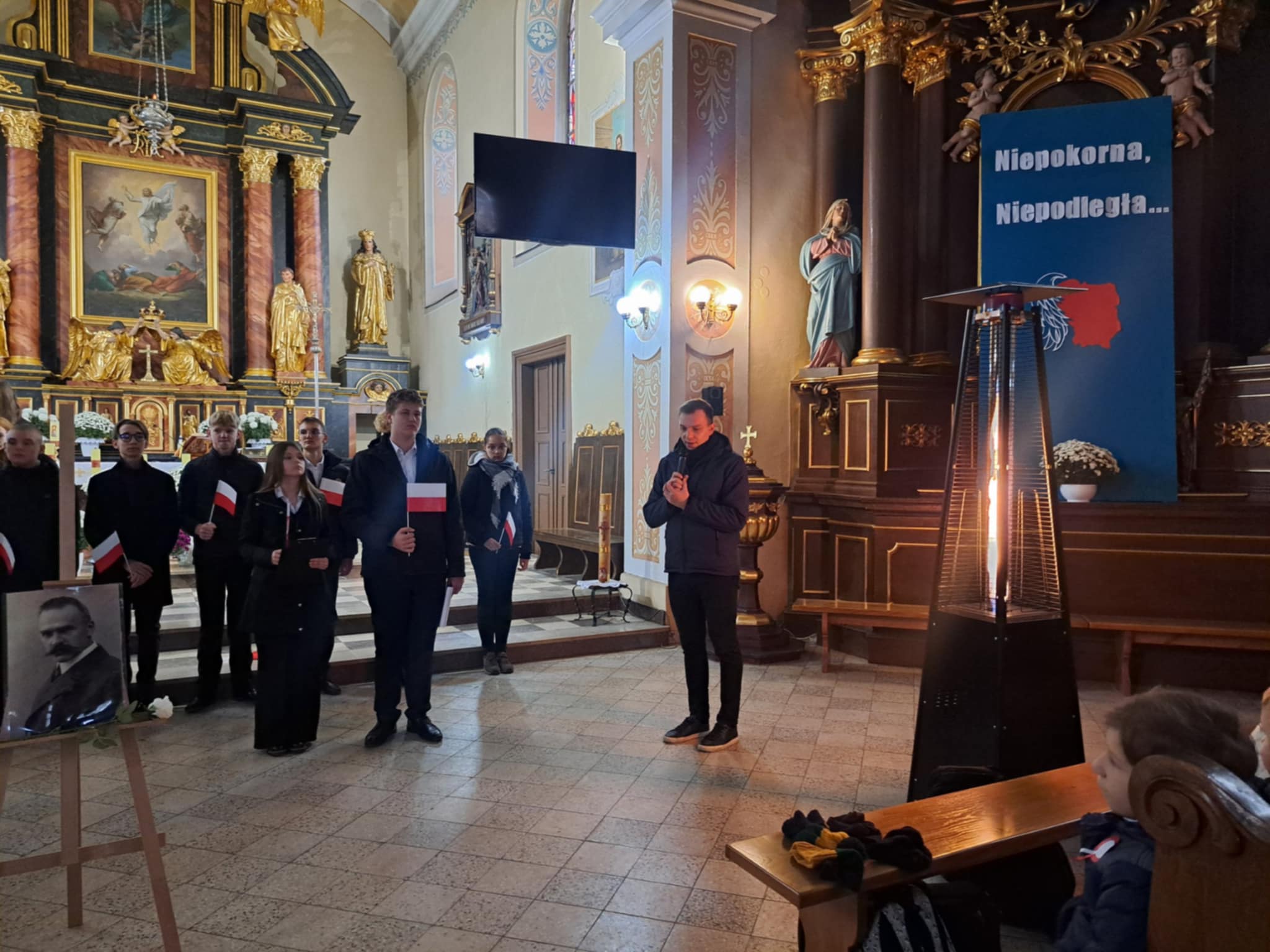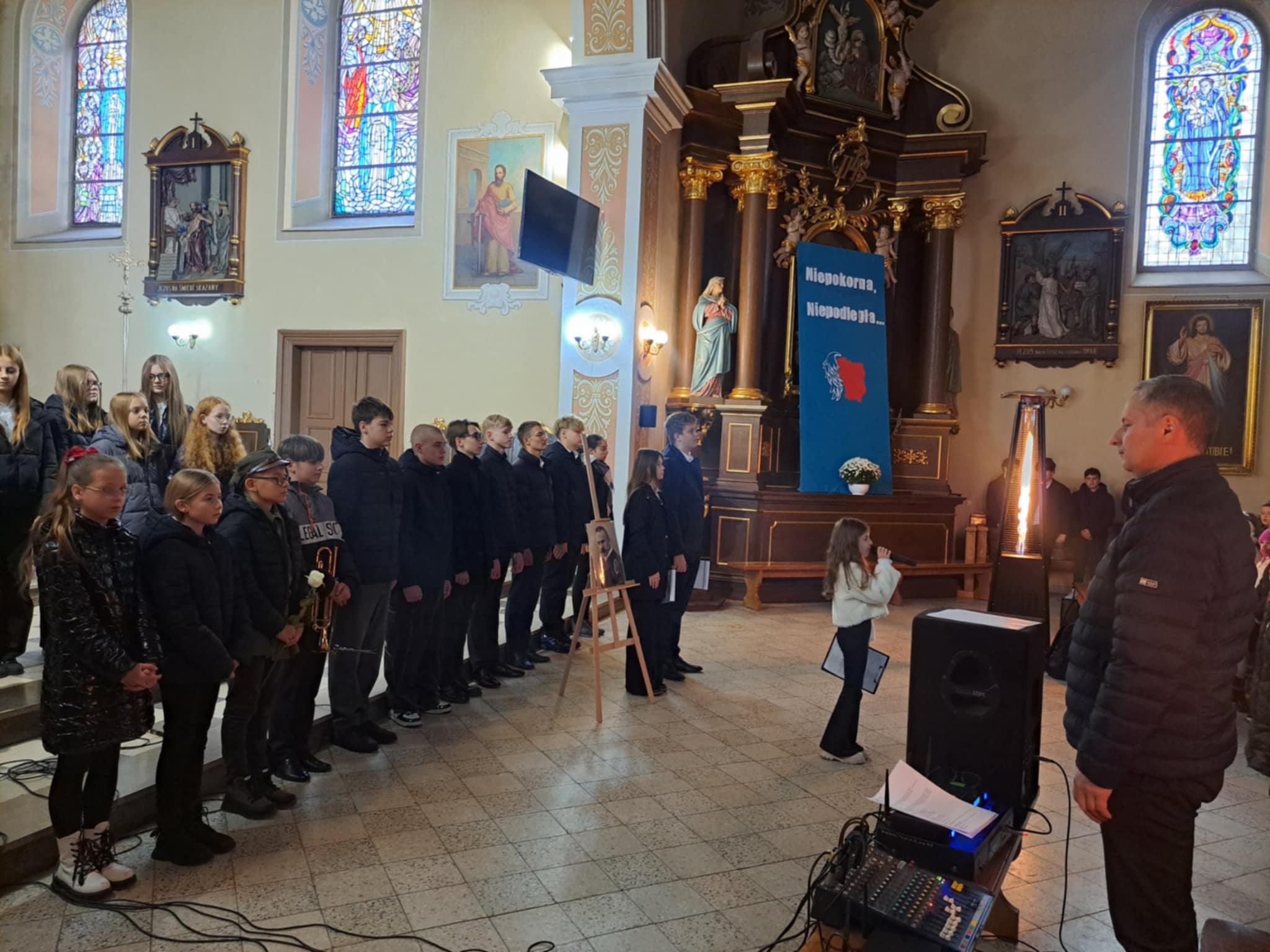 "Niepokorna, Niepodległa..."- pod takim hasłem uczniowie naszej szkoły zaprezentowali montaż slowno-muzyczny upamiętniający 107 rocznicę odzyskania przez Polskę niepodległości.