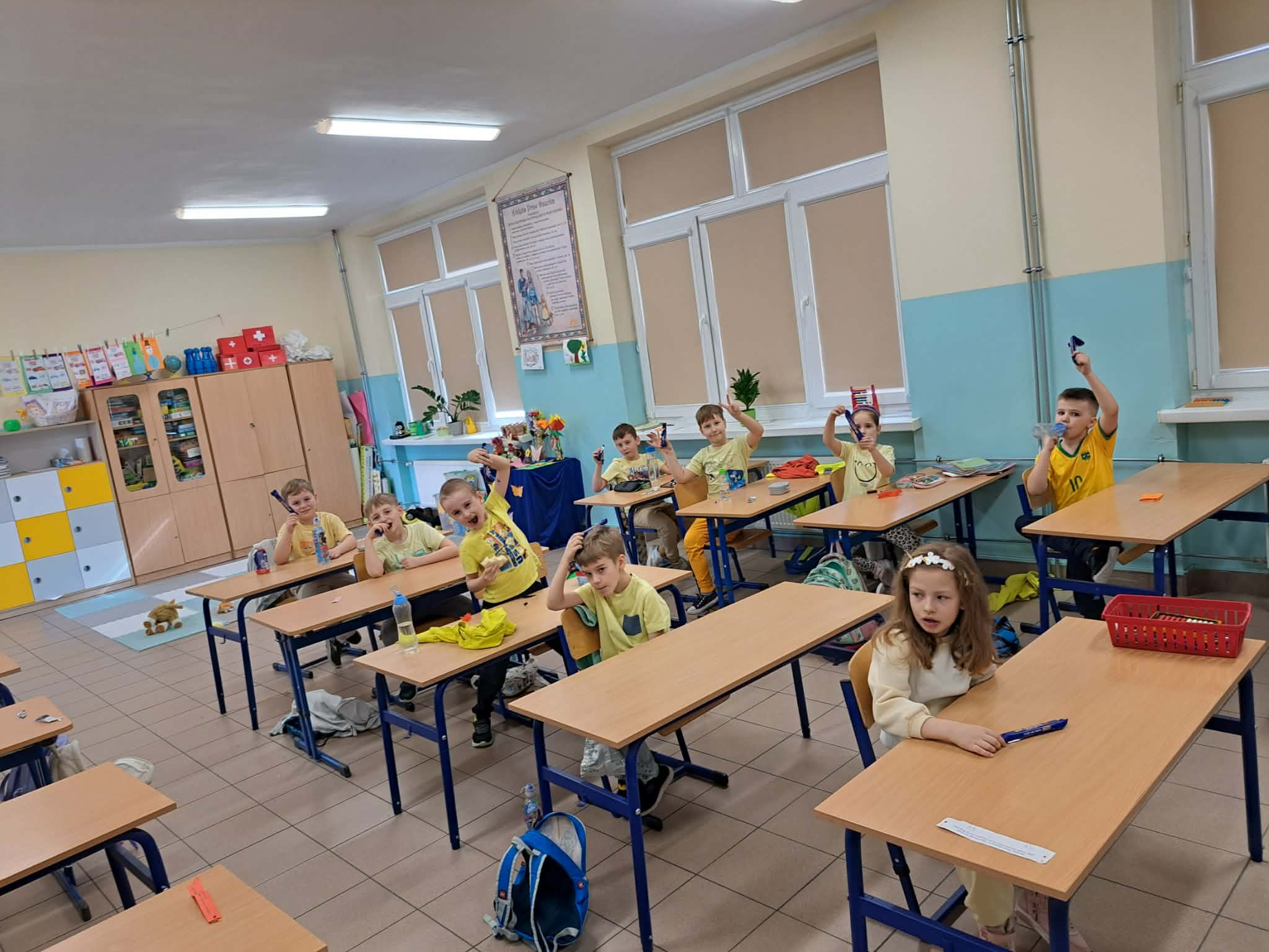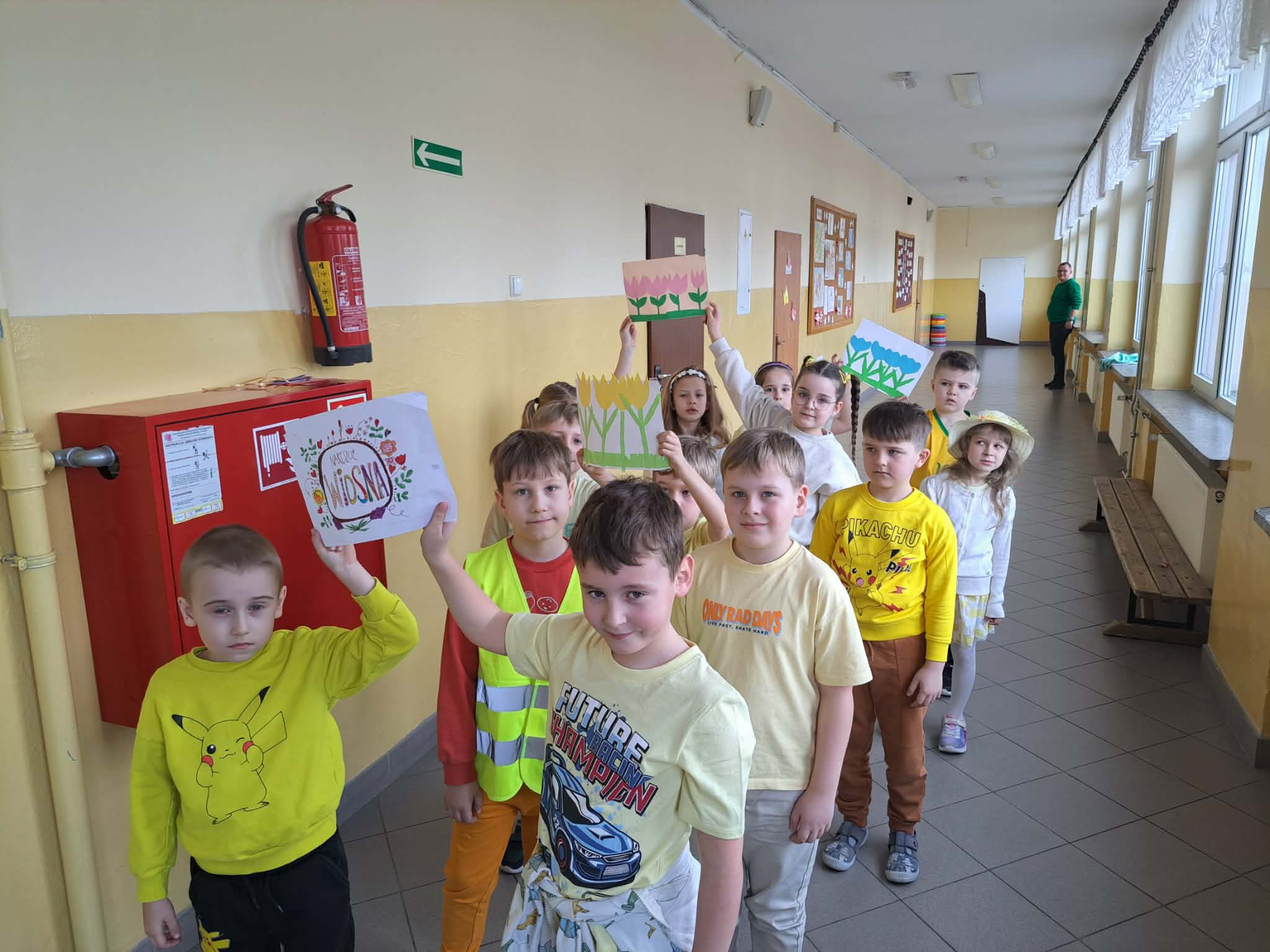 Dużym zainteresowaniem cieszyła się również gra terenowa polegająca na rozwiązywaniu zagadek i szukaniu oznak wiosny na terenie szkoły. Uczniowie z zaangażowaniem wykonywali zadania i odkrywali pierwsze zwiastuny nowej pory roku.