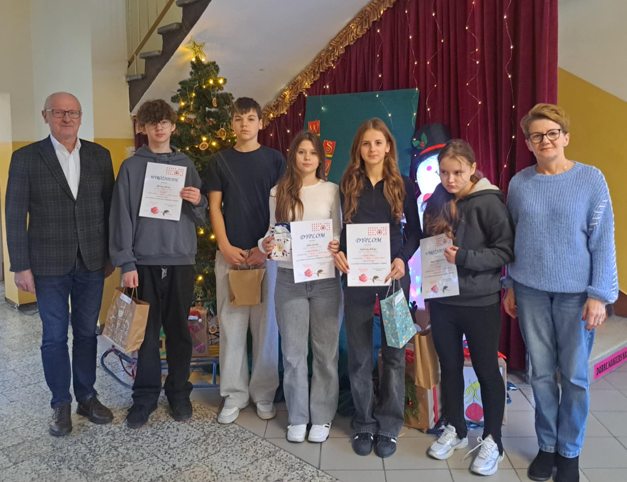 W listopadzie uczniowie klas ósmych naszej szkoły wzięli udział w powiatowym, plastycznym konkursie organizowanym przez SK PCK pod hasłem „Twoje życie w Twoich rękach”, którego celem było spopularyzowanie wśród młodzieży problemu uzależnień oraz nabycia nawyku kategorycznego mówienia „NIE” w chwilach zagrożenia. Zadaniem uczestników było przygotowanie pracy plastycznej tematycznie związanej z hasłem. Pięcioro uczniów z naszej szkoły wykazało się ogromną kreatywnością tworząc bardzo ciekawe prace i wszyscy zostali nagrodzeni. Ogłoszenie wyników oraz wręczenie dyplomów i nagród odbyło się 17 grudnia 2025r.