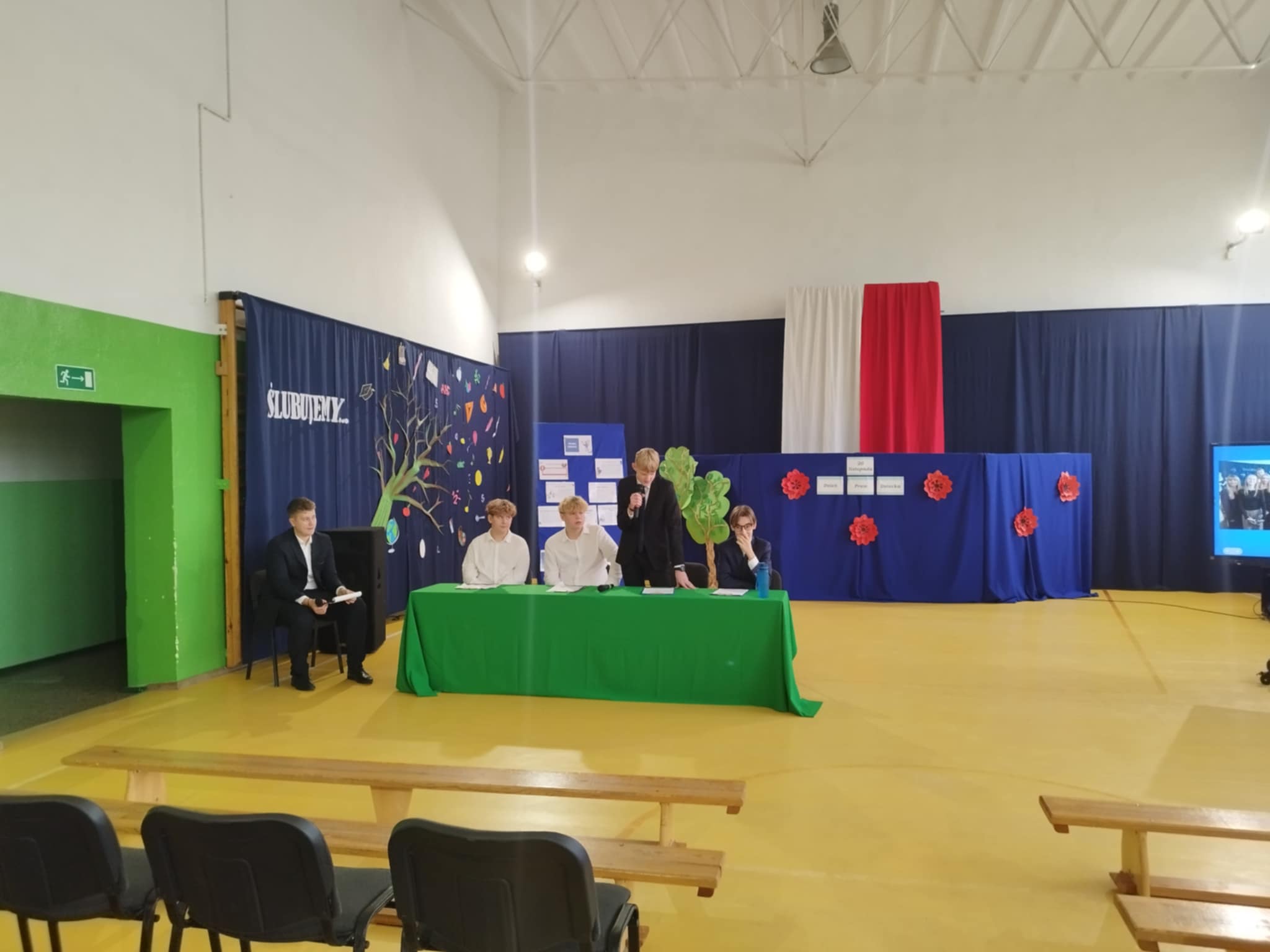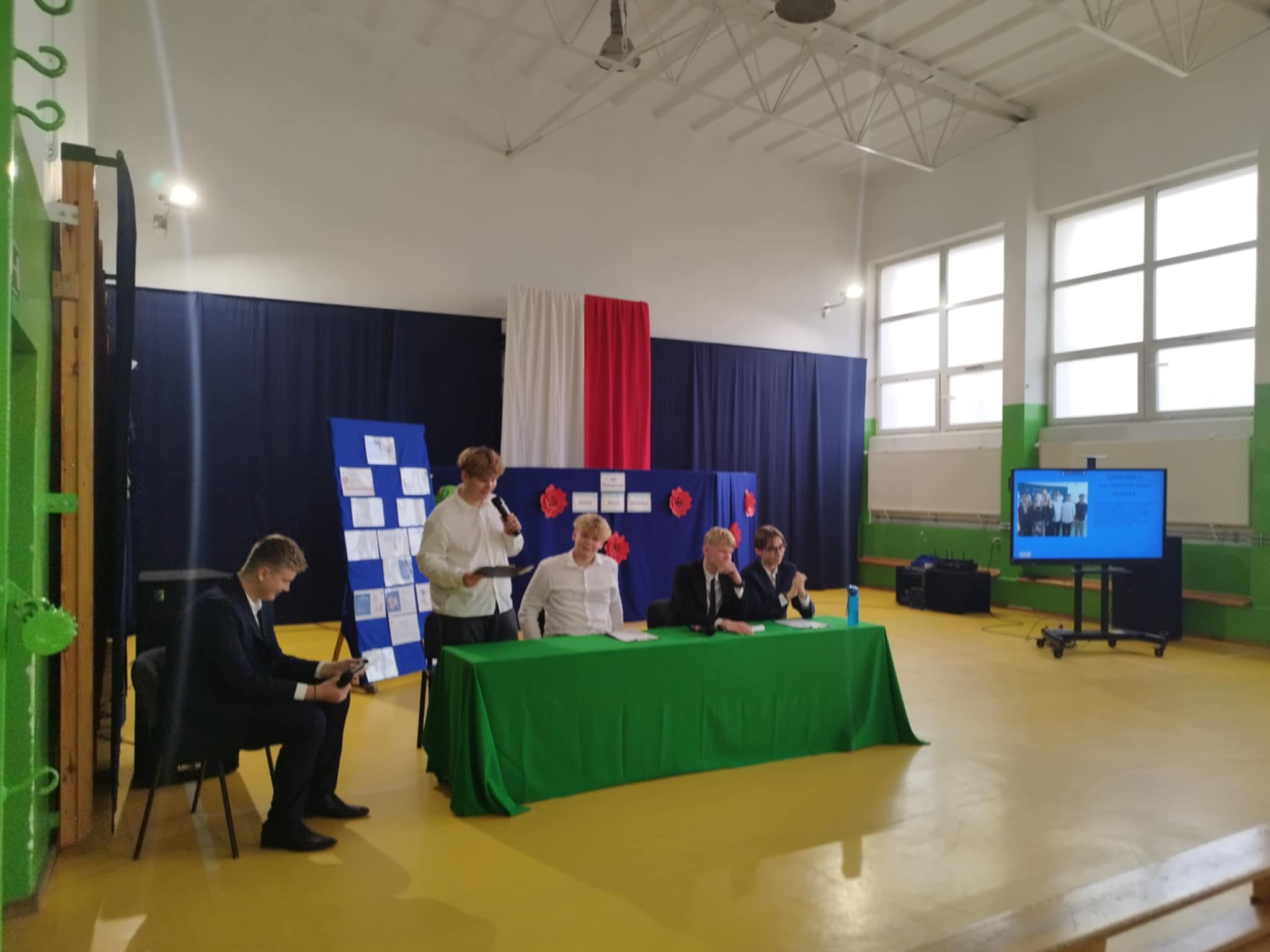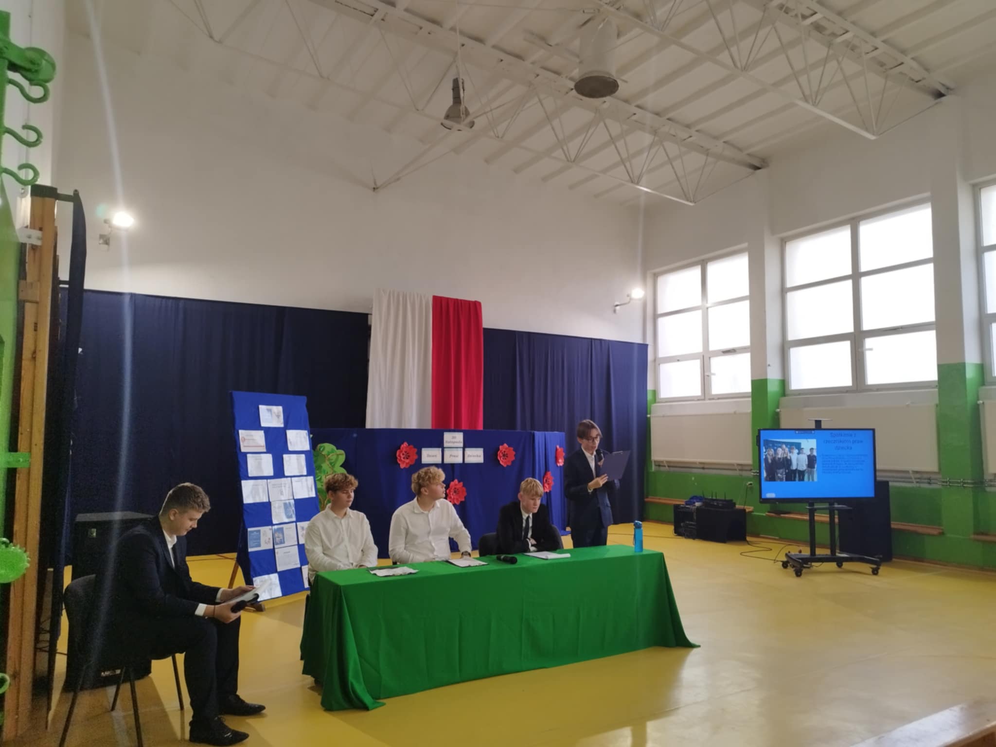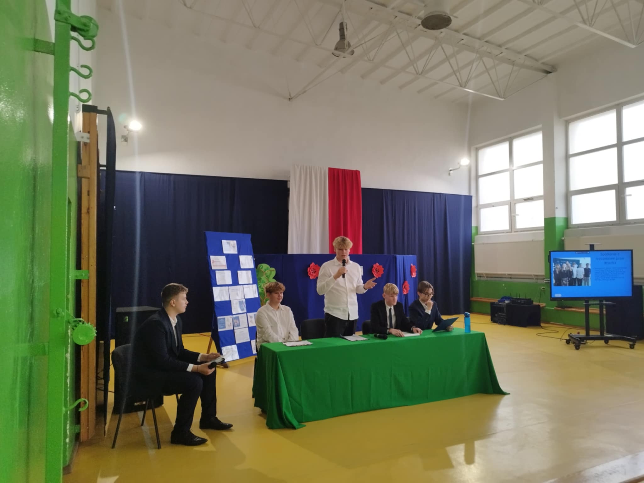 Uczestnikami debaty byli uczniowie klas ósmych: Aleksy Sękowski, Bartosz Graczyk, Natan Watkowski i Jakub Łasiński. Debatę prowadził przewodniczący SU – Szymon Szczesiak. Uczniowie otrzymali wcześniej pytania, na które musieli się przygotować merytorycznie. W dalszej części uczniowie zaproszonych klas mogli zadawać pytanie gościom: Pani Darii Arciszewskiej- szkolny psycholog , Panu Dyrektorowi naszej szkoły i Pani Katarzynie Sęczyk-Milewskiej - pedagog specjalny.