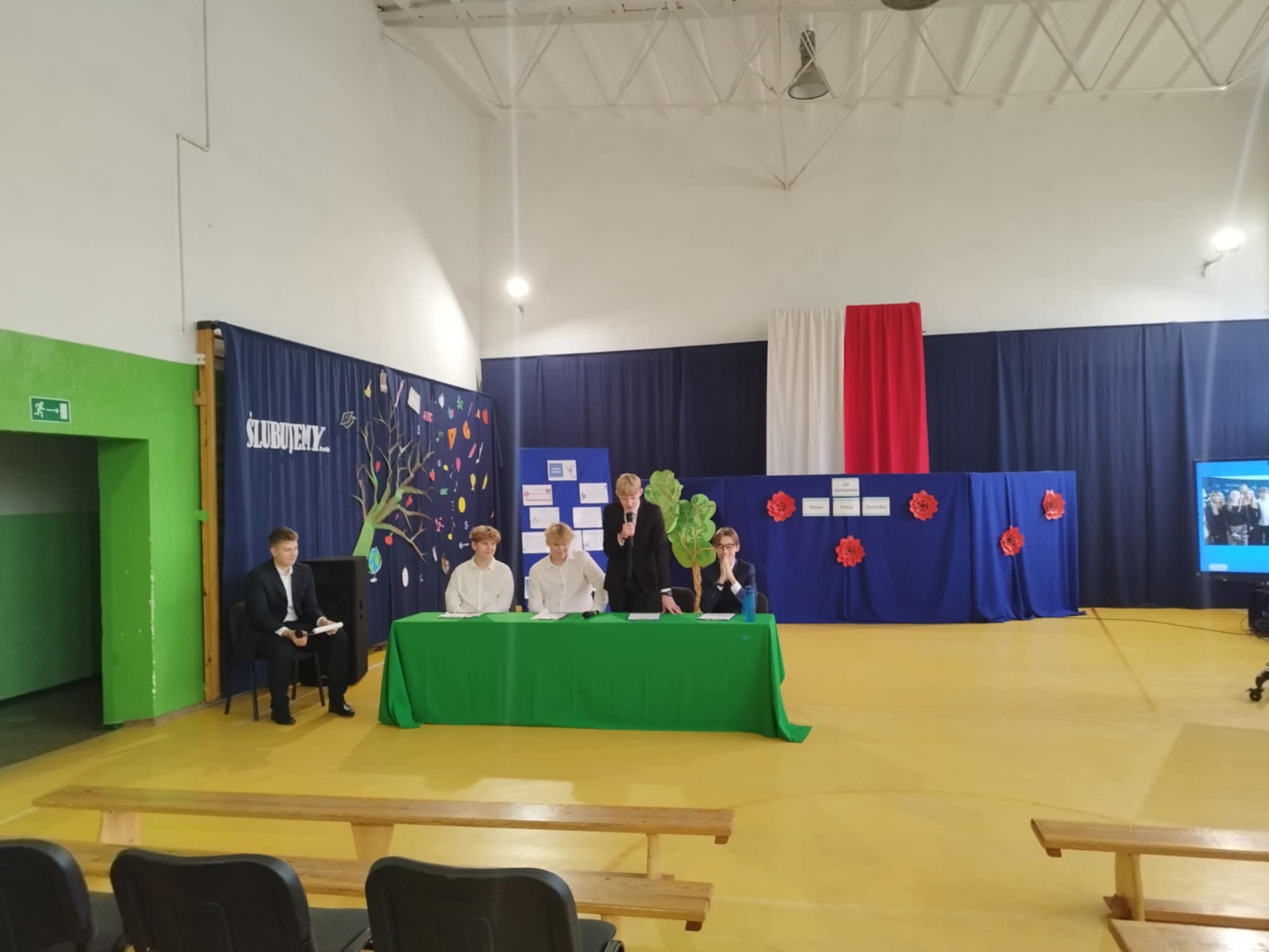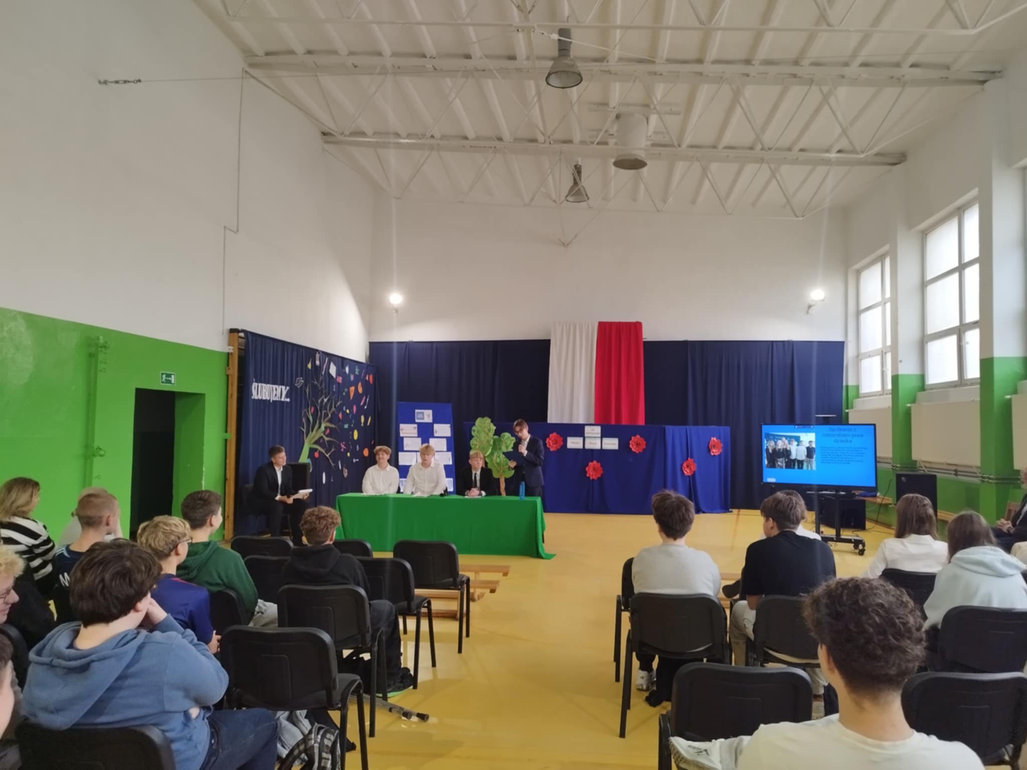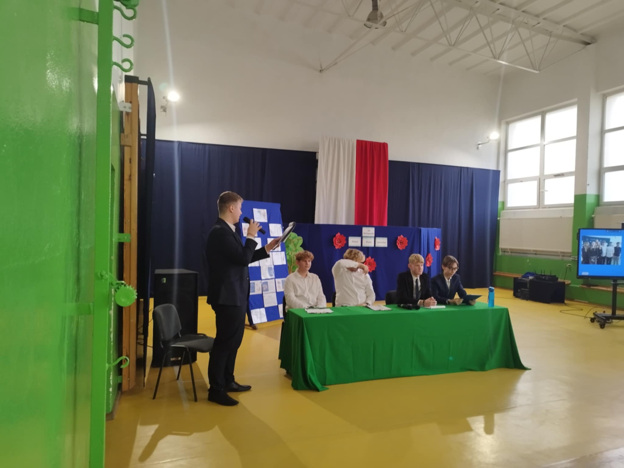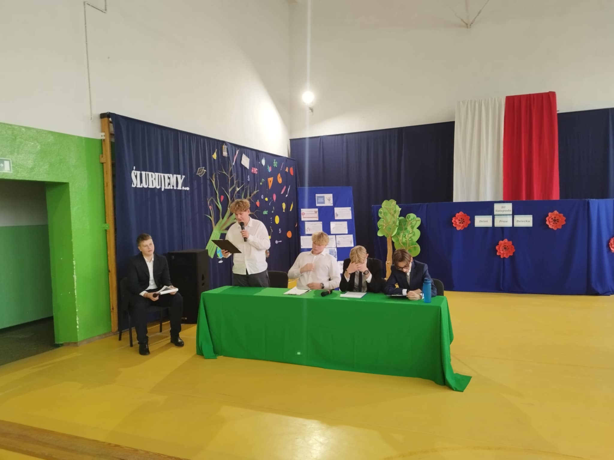 Uczestnikami debaty byli uczniowie klas ósmych: Aleksy Sękowski, Bartosz Graczyk, Natan Watkowski i Jakub Łasiński. Debatę prowadził przewodniczący SU – Szymon Szczesiak. Uczniowie otrzymali wcześniej pytania, na które musieli się przygotować merytorycznie. W dalszej części uczniowie zaproszonych klas mogli zadawać pytanie gościom: Pani Darii Arciszewskiej- szkolny psycholog , Panu Dyrektorowi naszej szkoły i Pani Katarzynie Sęczyk-Milewskiej - pedagog specjalny.