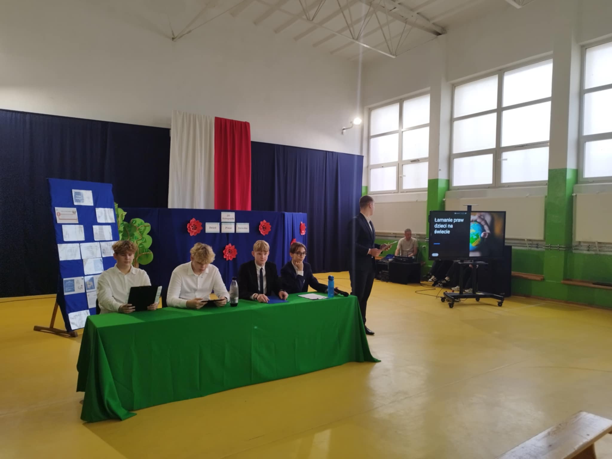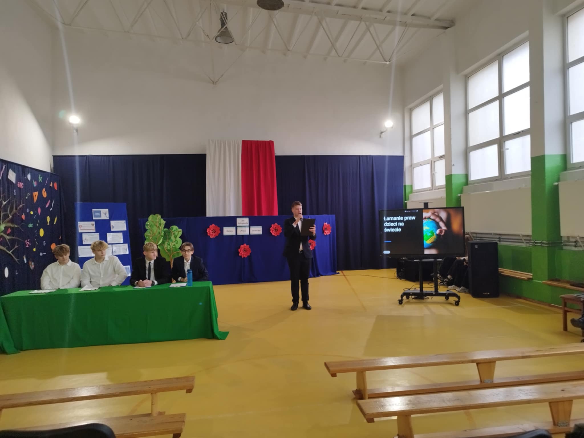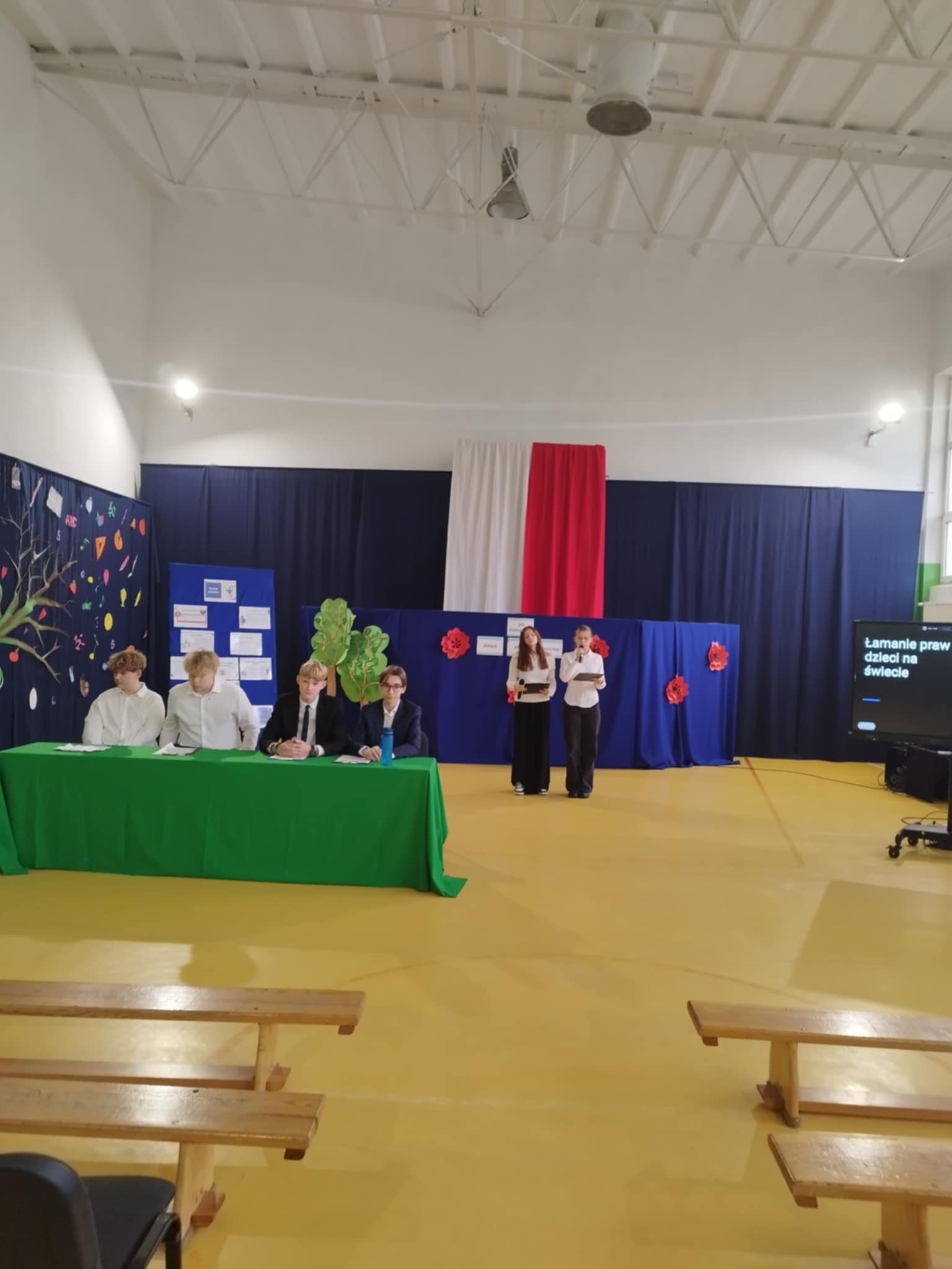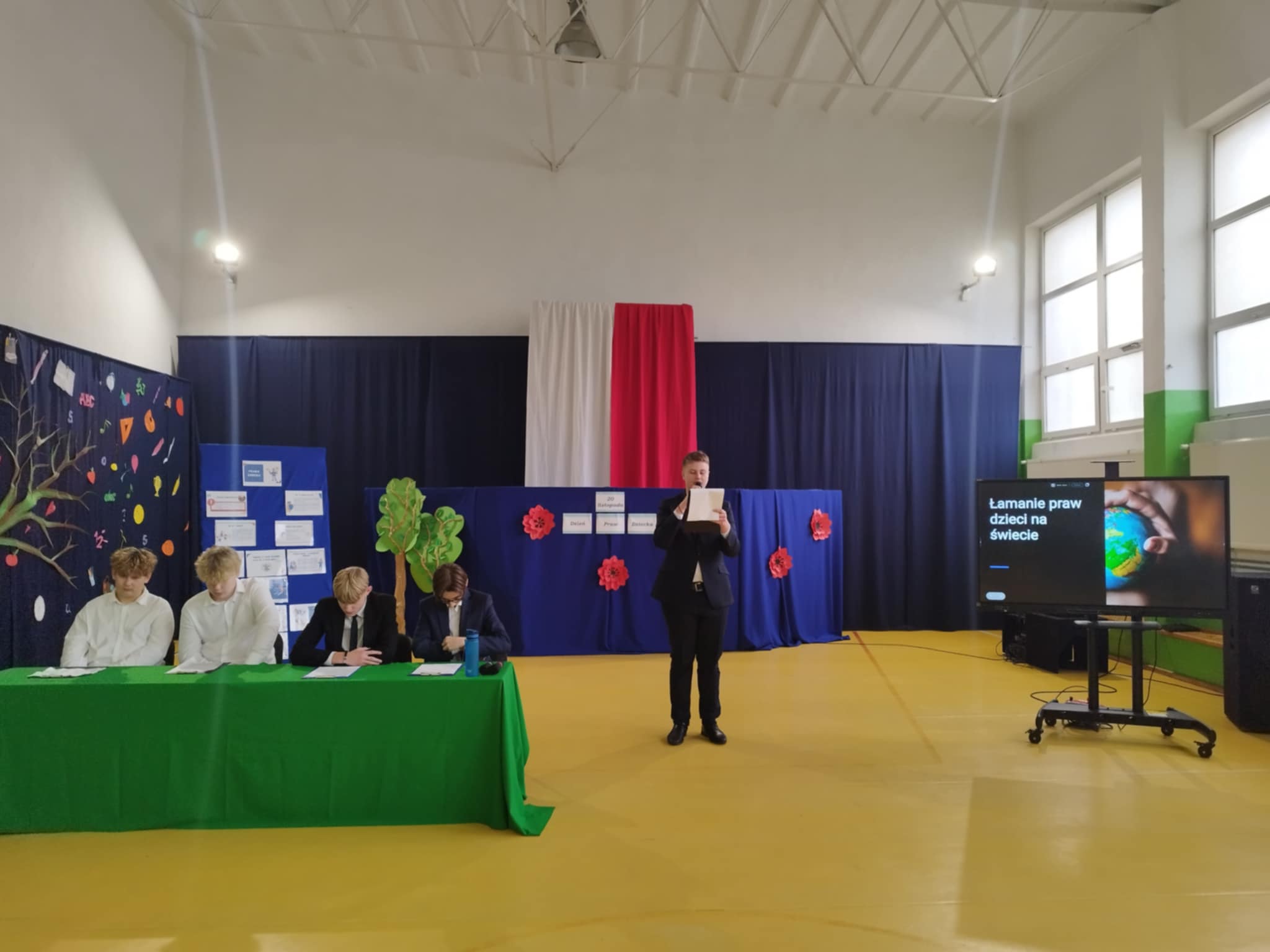 W dniu 20.11.2025 r. w naszej szkole obchodziliśmy Dzień Praw Dziecka. Święto wszystkich dzieci na całym świecie uczciliśmy licznymi gazetkami na szkolnych korytarzach i w klasach, a samorząd uczniowski w ramach przedmiotu: wiedza o społeczeństwie przygotował debatę o prawach dzieci w świecie dorosłych, ich przestrzeganiu i ochronie. Debatę poprzedziła krótka oprawa artystyczna, geneza powstania Konwencji o Prawach Dziecka i prezentacja o łamaniu praw dzieci na świecie, którą przedstawił Aleksy Sękowski.