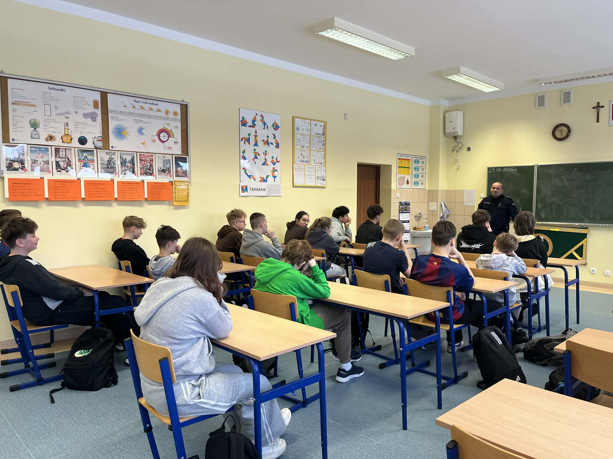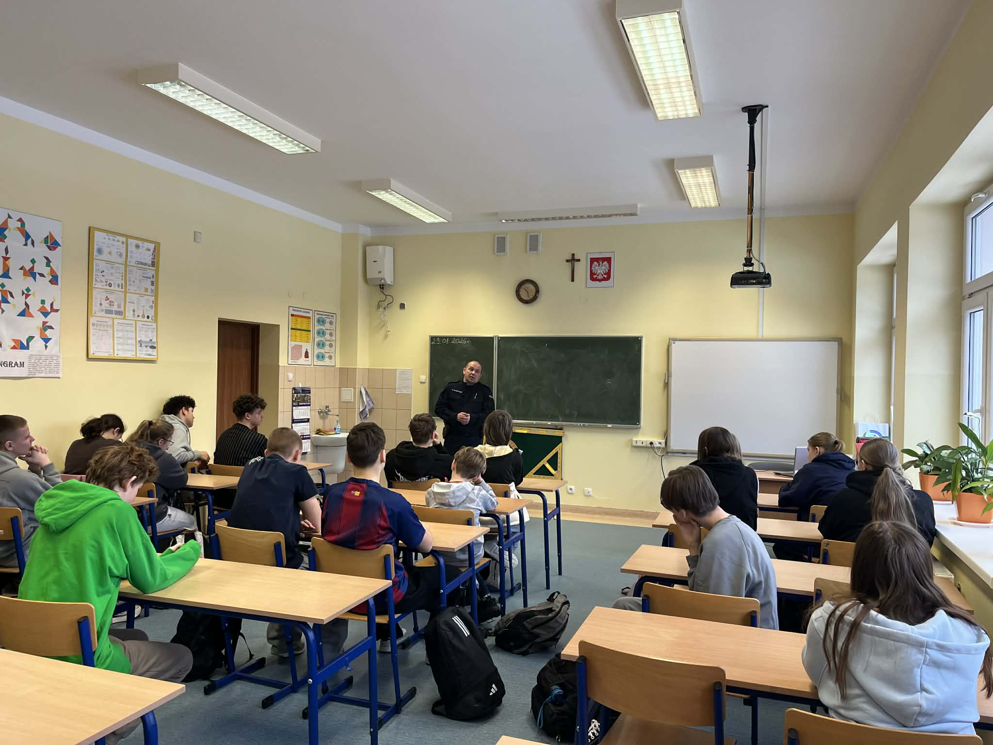 Uczniowie dowiedzieli się, jak unikać niebezpiecznych sytuacji, dbać o zdrowie i reagować w sytuacjach zagrożenia. Istotną częścią spotkania była również rozmowa na temat cyberprzemocy oraz odpowiedzialności karnej nieletnich, bezpiecznego korzystania z mediów społecznościowych.