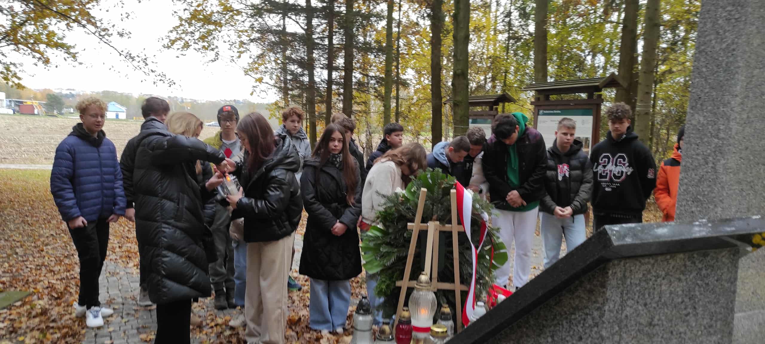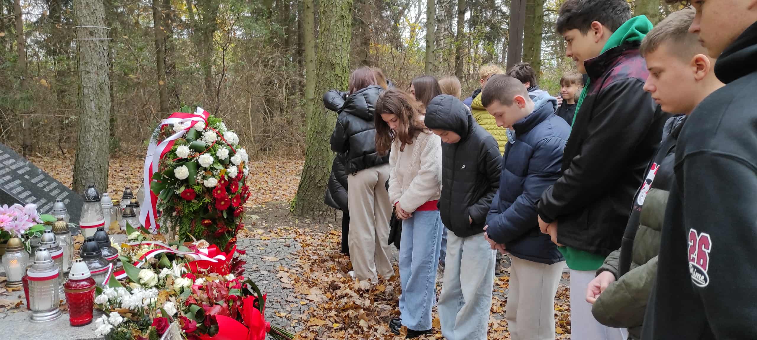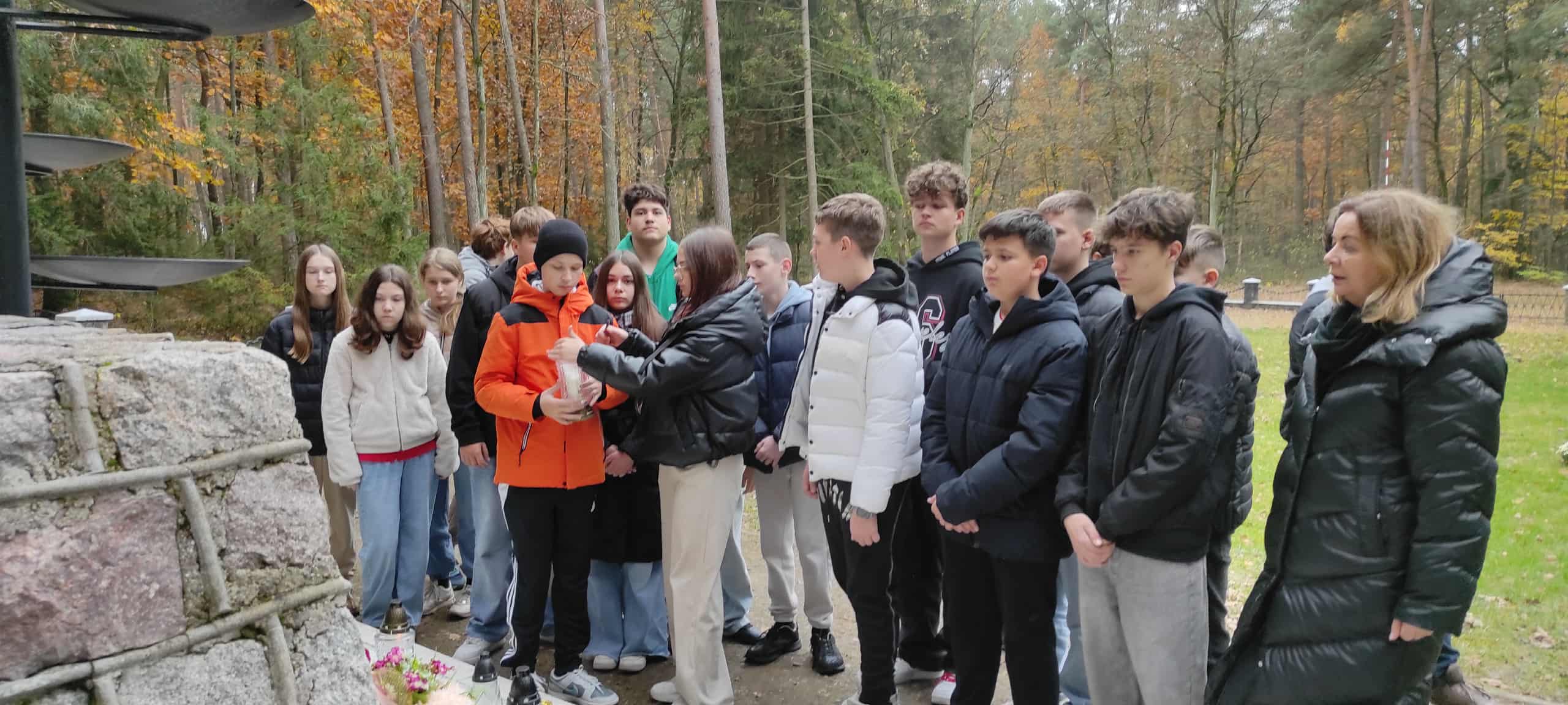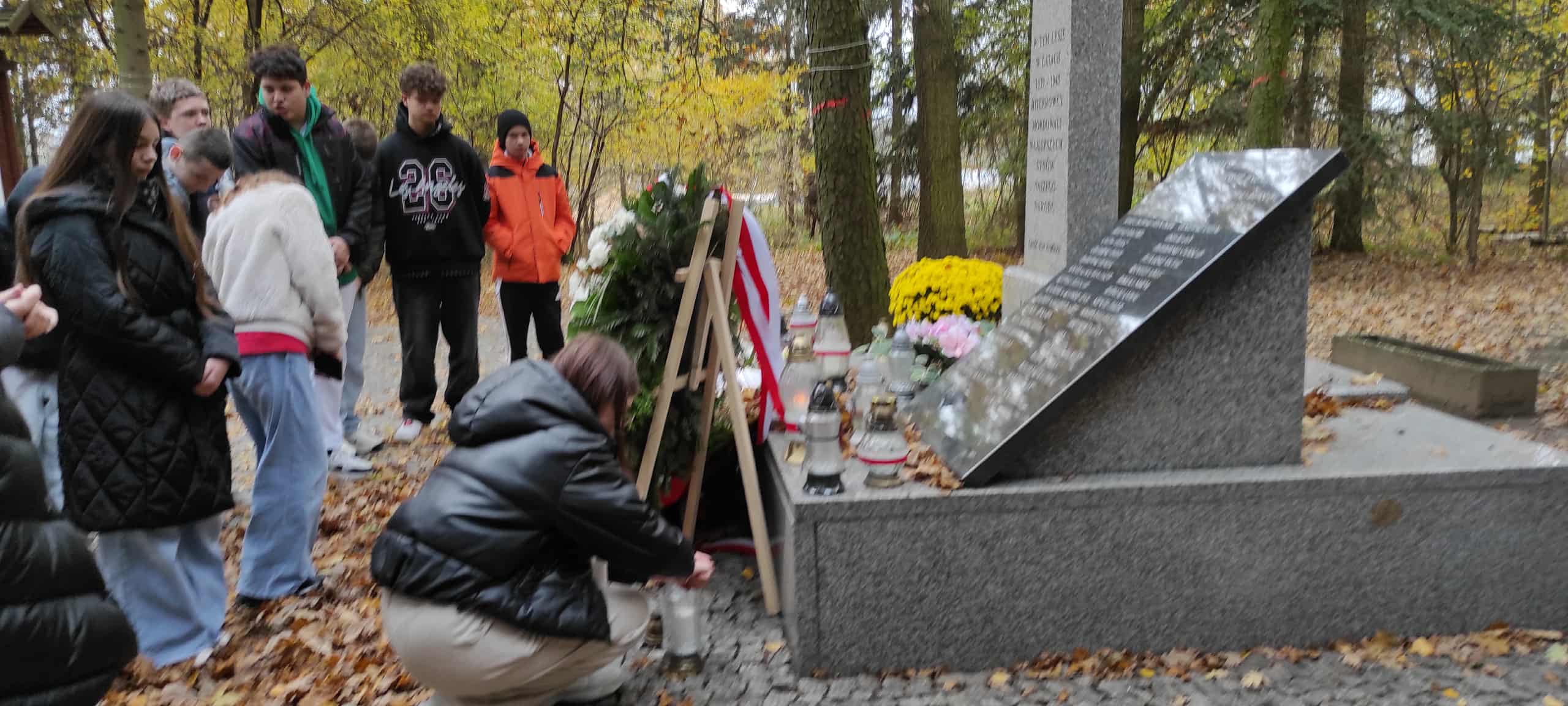 W dniu 30.10.2025 r. w ramach corocznej akcji ‘ Szkoła pamięta…” uczniowie klasy VII wraz z wychowawczynią Anną Grzegorzewską i Panią Danutą Ardanowską odwiedzili Miejsca Pamięci Narodowej w najbliższej okolicy, oddając hołd poległym i pomordowanym w czasie II wojny światowej przez hitlerowców.