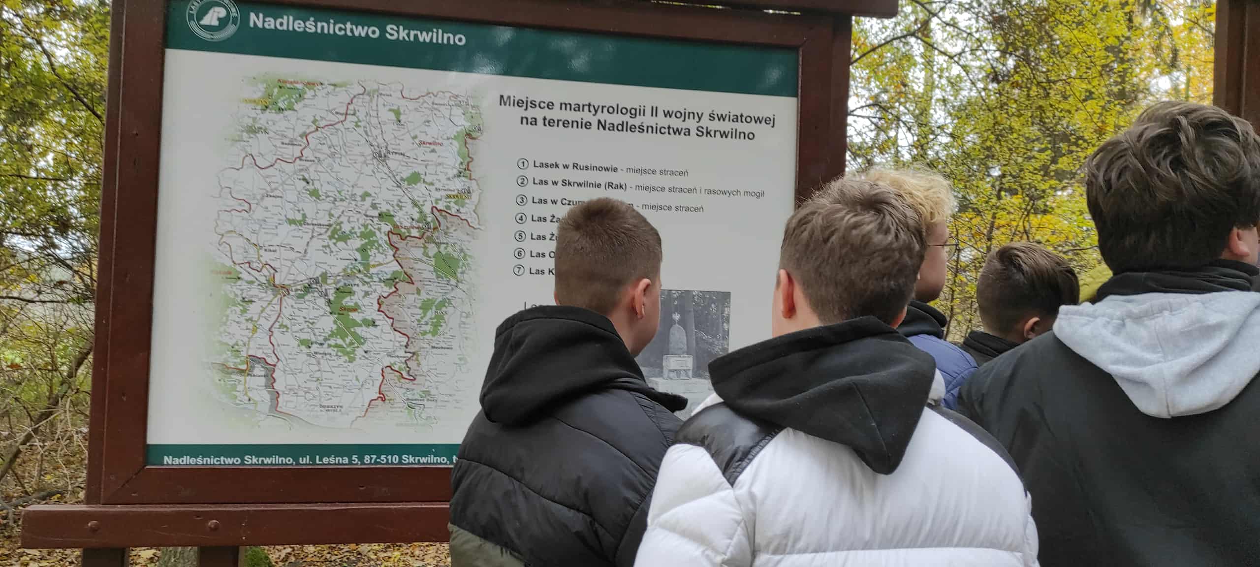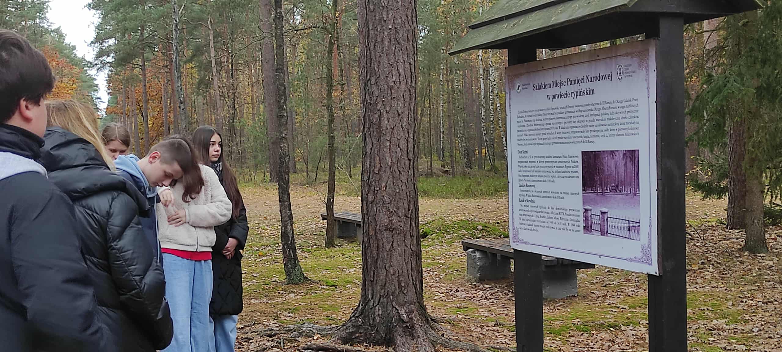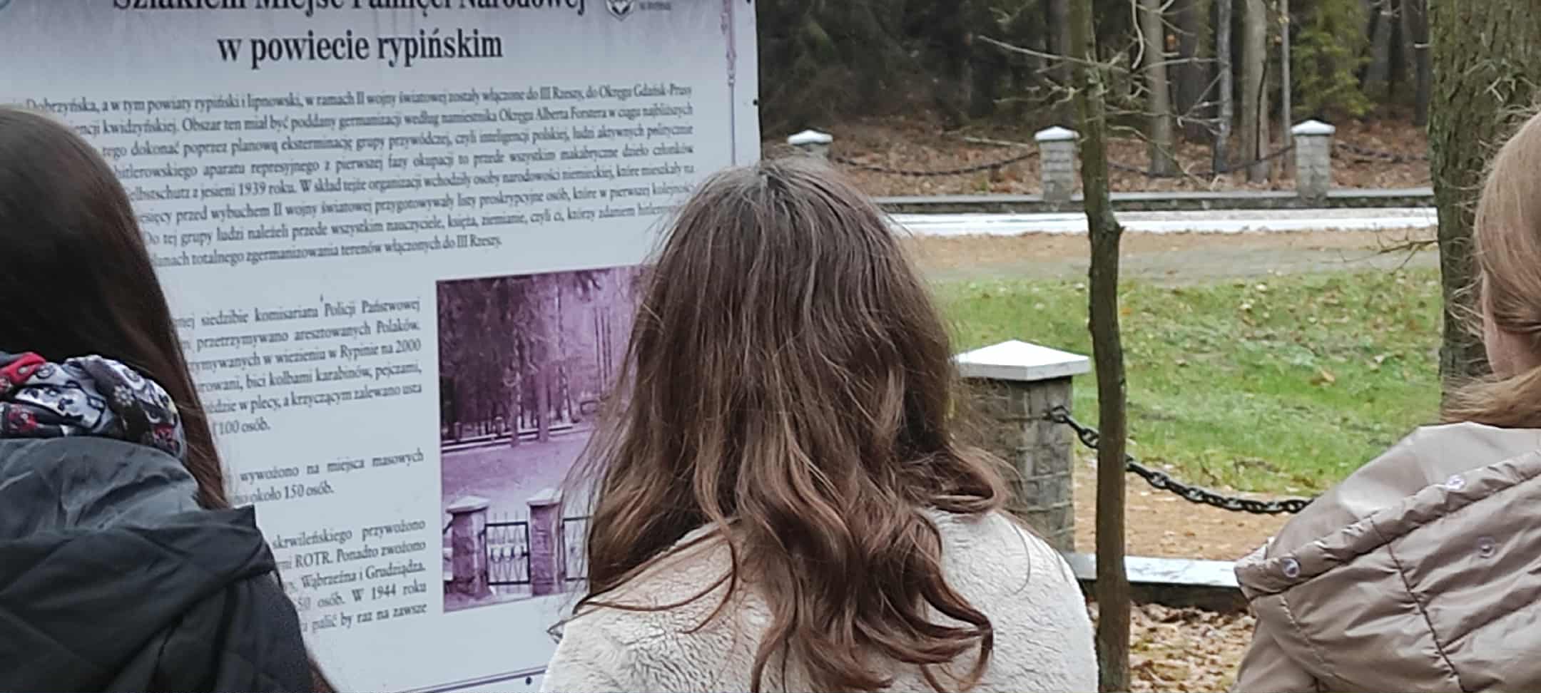 Pierwszym punktem wycieczki był Lasek Rusinowski. W dalszej części uczniowie udali się na cmentarz parafialny w Skrwilnie, odwiedzili tam Krzyża Powstańców Styczniowych i Nekropolię właścicieli majątku skrwileńskiego. Następnym celem wycieczki był pomnik ofiar hitleryzmu powiatu rypińskiego w lesie w Raku i pomnik przy naszej szkole. We wszystkich tych miejscach uczniowie zapalili znicze i minutą ciszy uczcili pamięć poległych i pomordowanych.