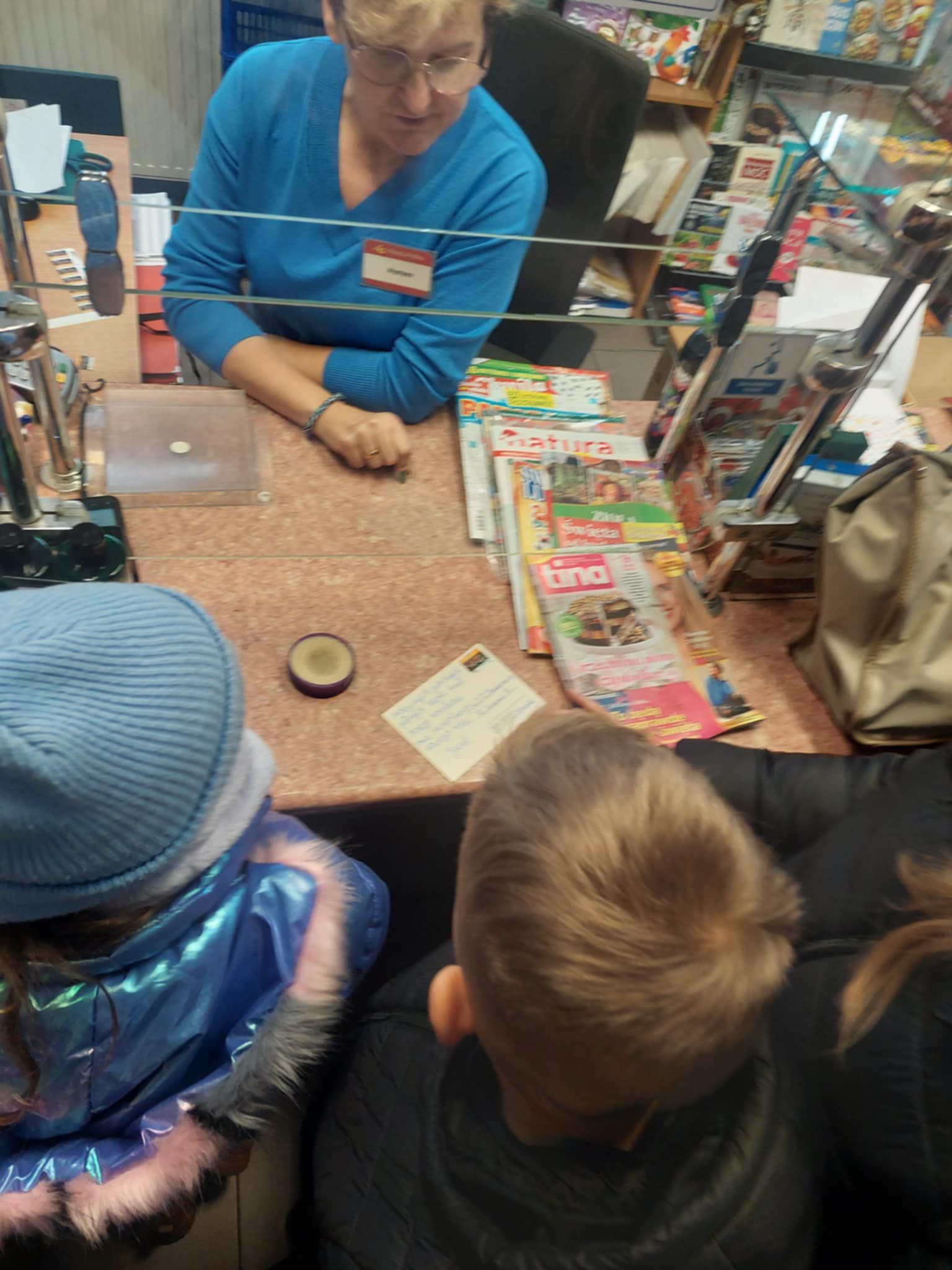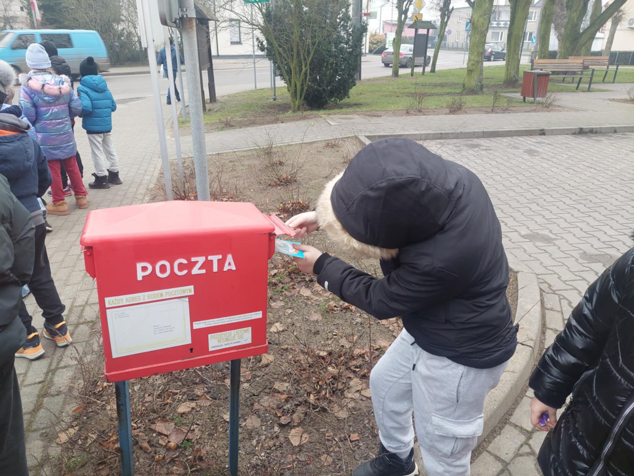 W dniu 17 grudnia klasa 2 udała się na wycieczkę do urzędu pocztowego. Celem wyjścia było zapoznanie się z pracą poczty oraz nauczenie się, w jaki sposób poprawnie wysyła się kartkę z życzeniami. Po przybyciu na miejsce pani pracująca na poczcie opowiedziała nam, jakie usługi oferuje urząd pocztowy. Dowiedzieliśmy się, jak wygląda droga listu od nadawcy do adresata oraz jakie są rodzaje przesyłek. Następnie obejrzeliśmy okienko pocztowe, skrzynkę na listy oraz znaczki. Kolejnym etapem wycieczki było samodzielne wysyłanie kartek z życzeniami do rodziców. Każdy z nas wcześniej przygotował kartkę, a na miejscu uczyliśmy się poprawnie naklejać znaczek i wrzucać kartkę do skrzynki pocztowej. Było to bardzo ciekawe i sprawiło nam dużo radości.