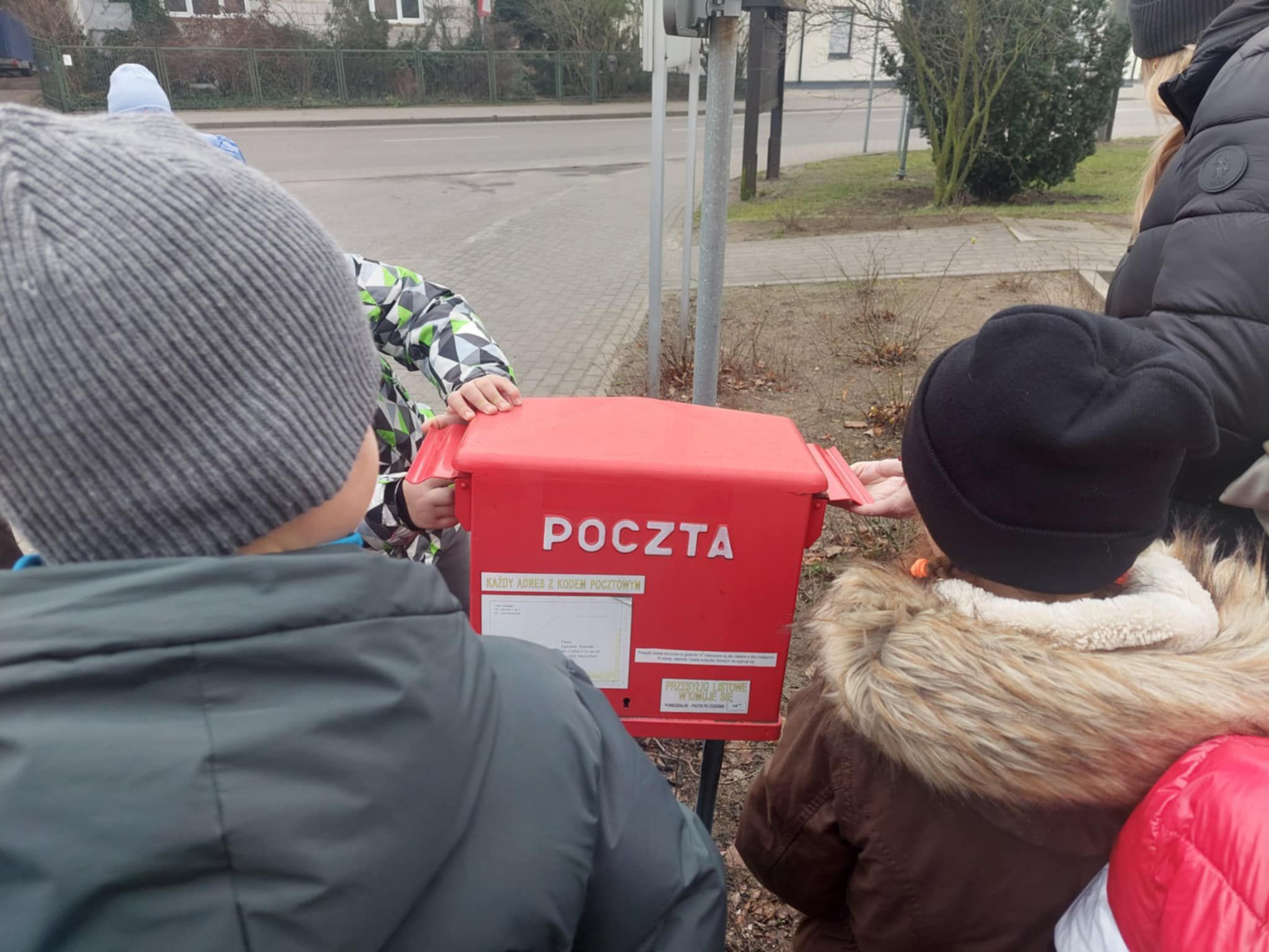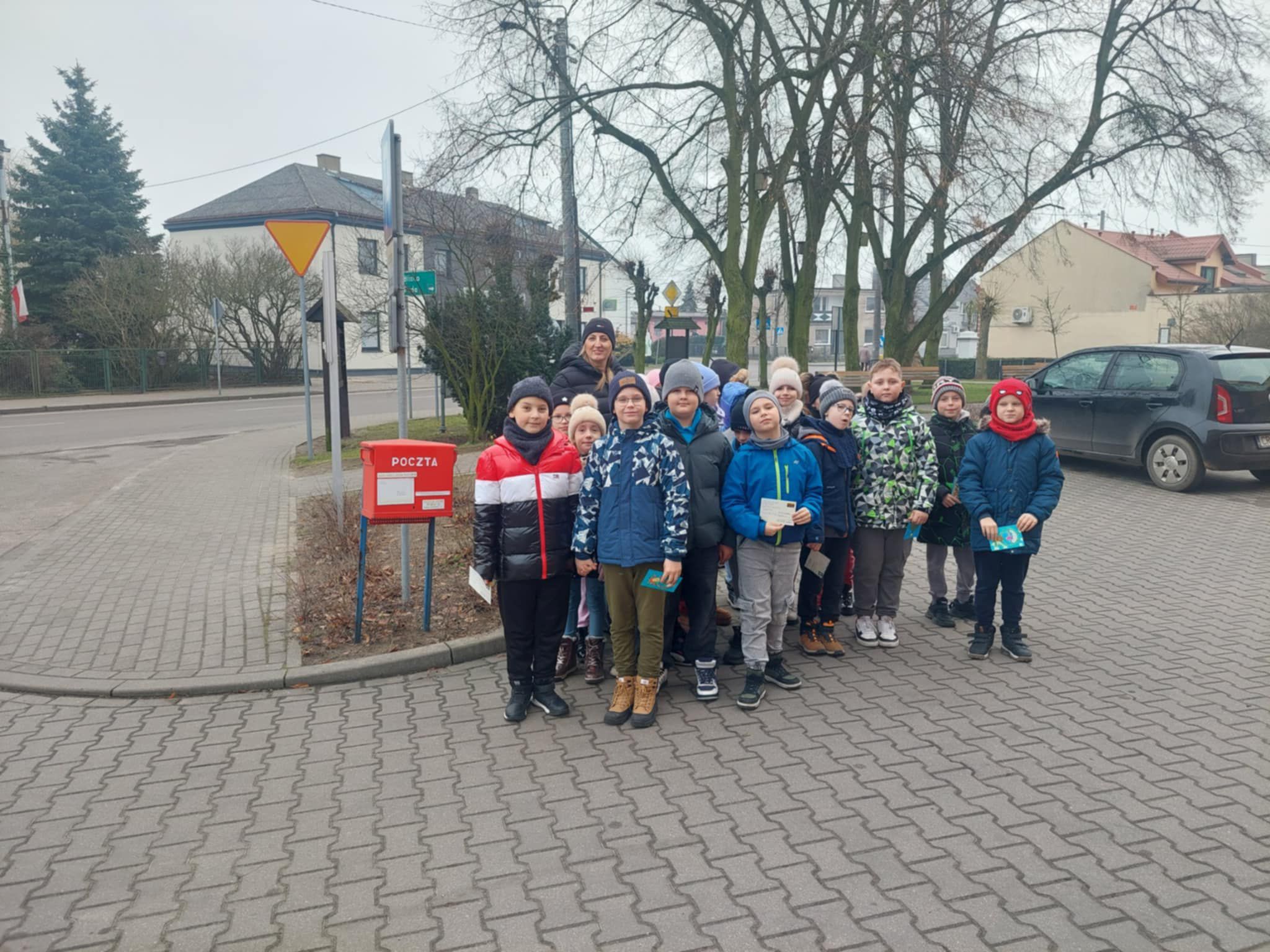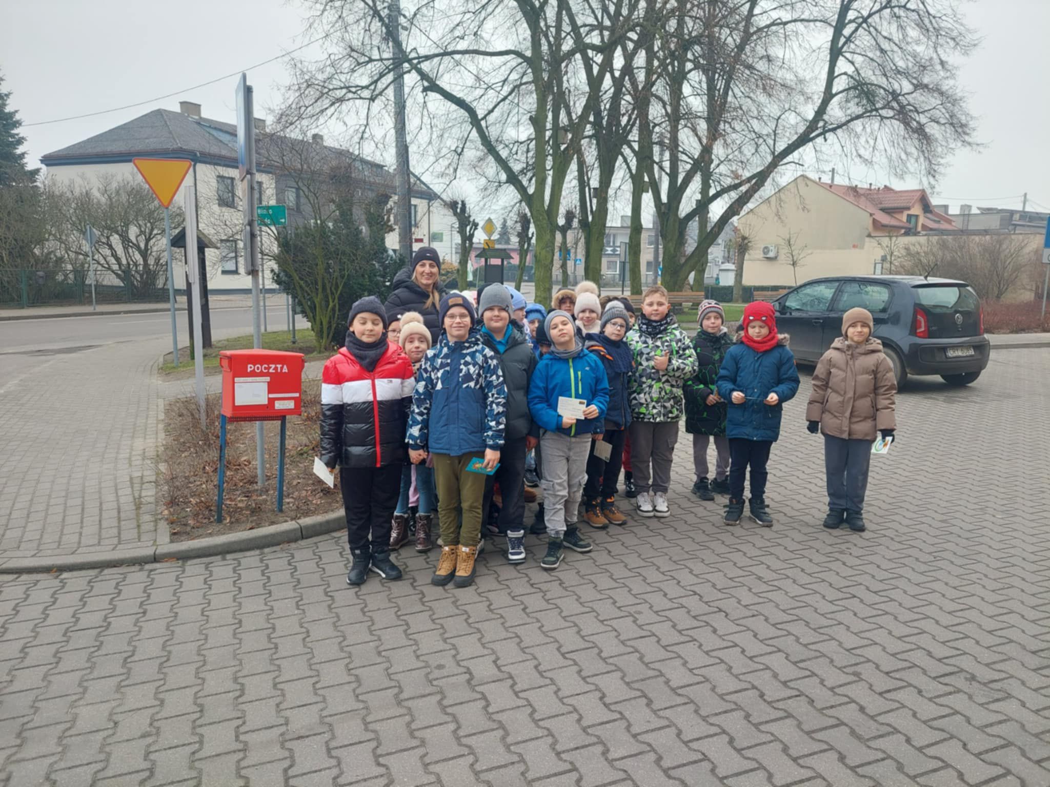 W dniu 17 grudnia klasa 2 udała się na wycieczkę do urzędu pocztowego. Celem wyjścia było zapoznanie się z pracą poczty oraz nauczenie się, w jaki sposób poprawnie wysyła się kartkę z życzeniami. Po przybyciu na miejsce pani pracująca na poczcie opowiedziała nam, jakie usługi oferuje urząd pocztowy. Dowiedzieliśmy się, jak wygląda droga listu od nadawcy do adresata oraz jakie są rodzaje przesyłek. Następnie obejrzeliśmy okienko pocztowe, skrzynkę na listy oraz znaczki. Kolejnym etapem wycieczki było samodzielne wysyłanie kartek z życzeniami do rodziców. Każdy z nas wcześniej przygotował kartkę, a na miejscu uczyliśmy się poprawnie naklejać znaczek i wrzucać kartkę do skrzynki pocztowej. Było to bardzo ciekawe i sprawiło nam dużo radości.