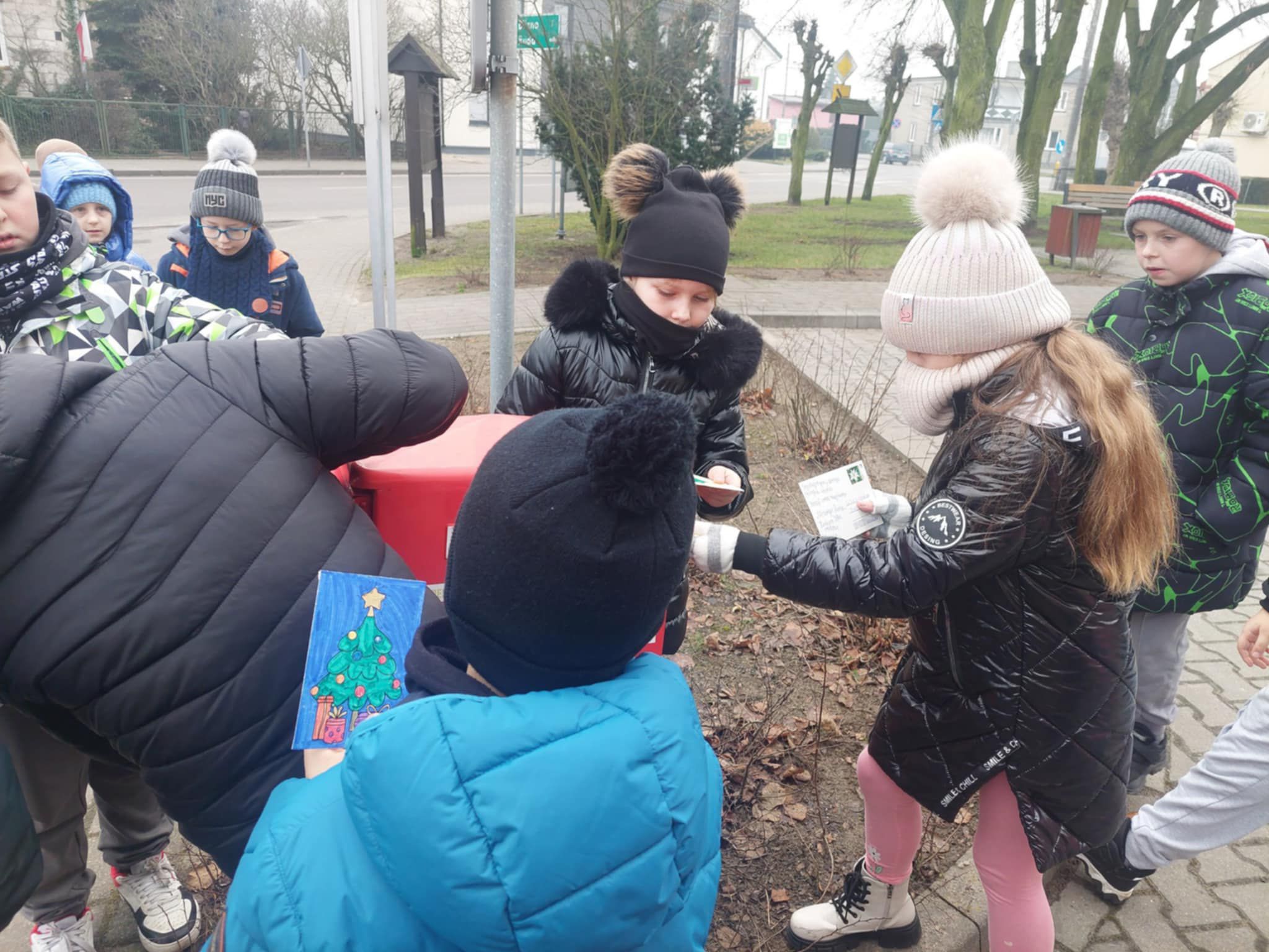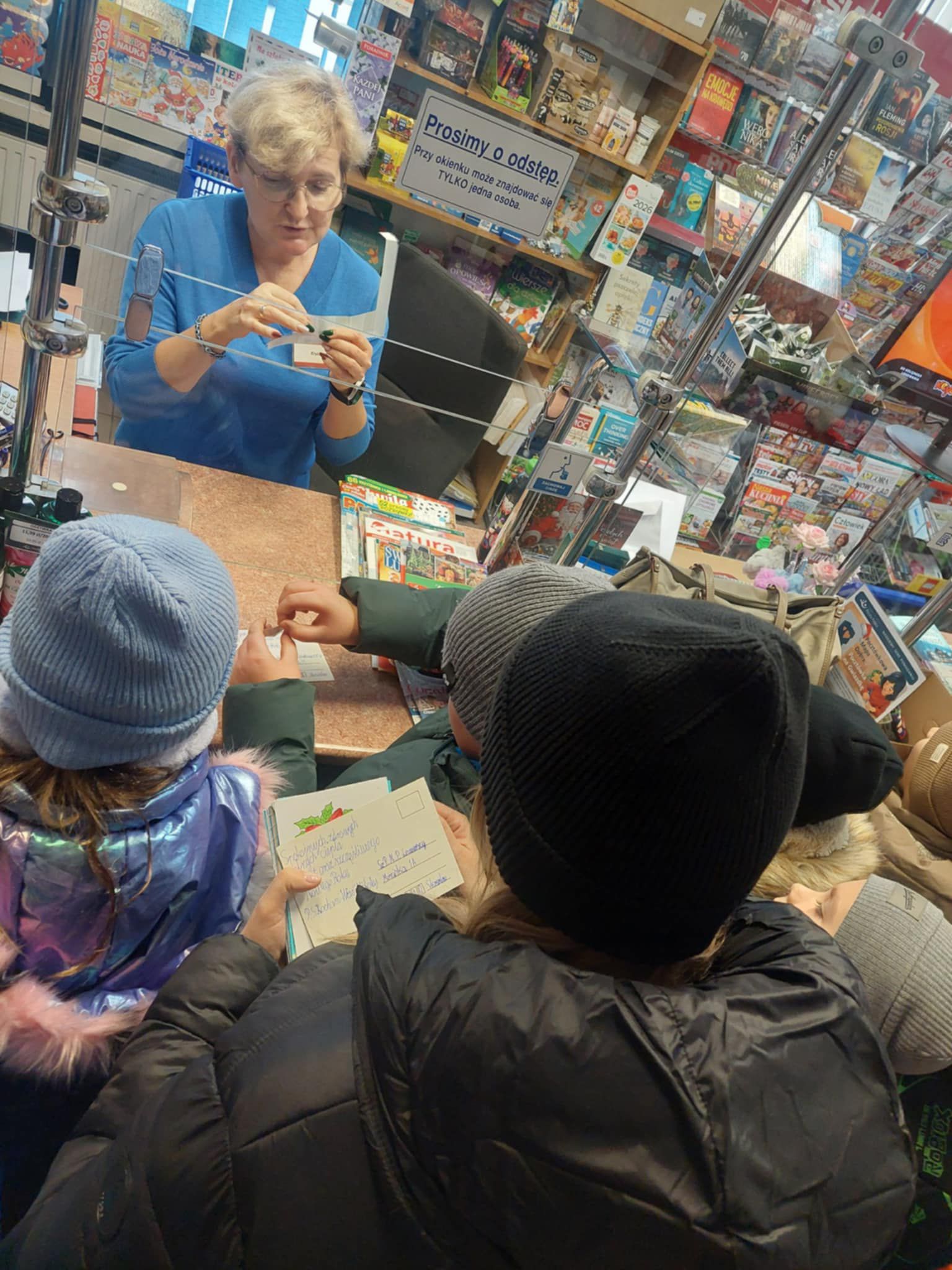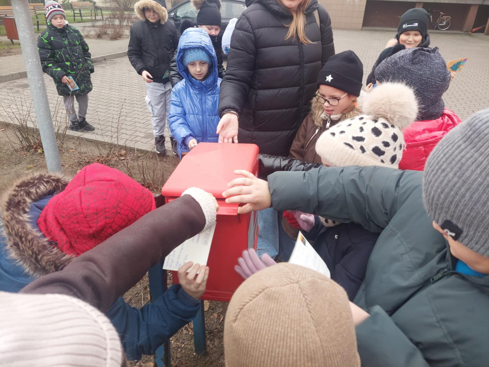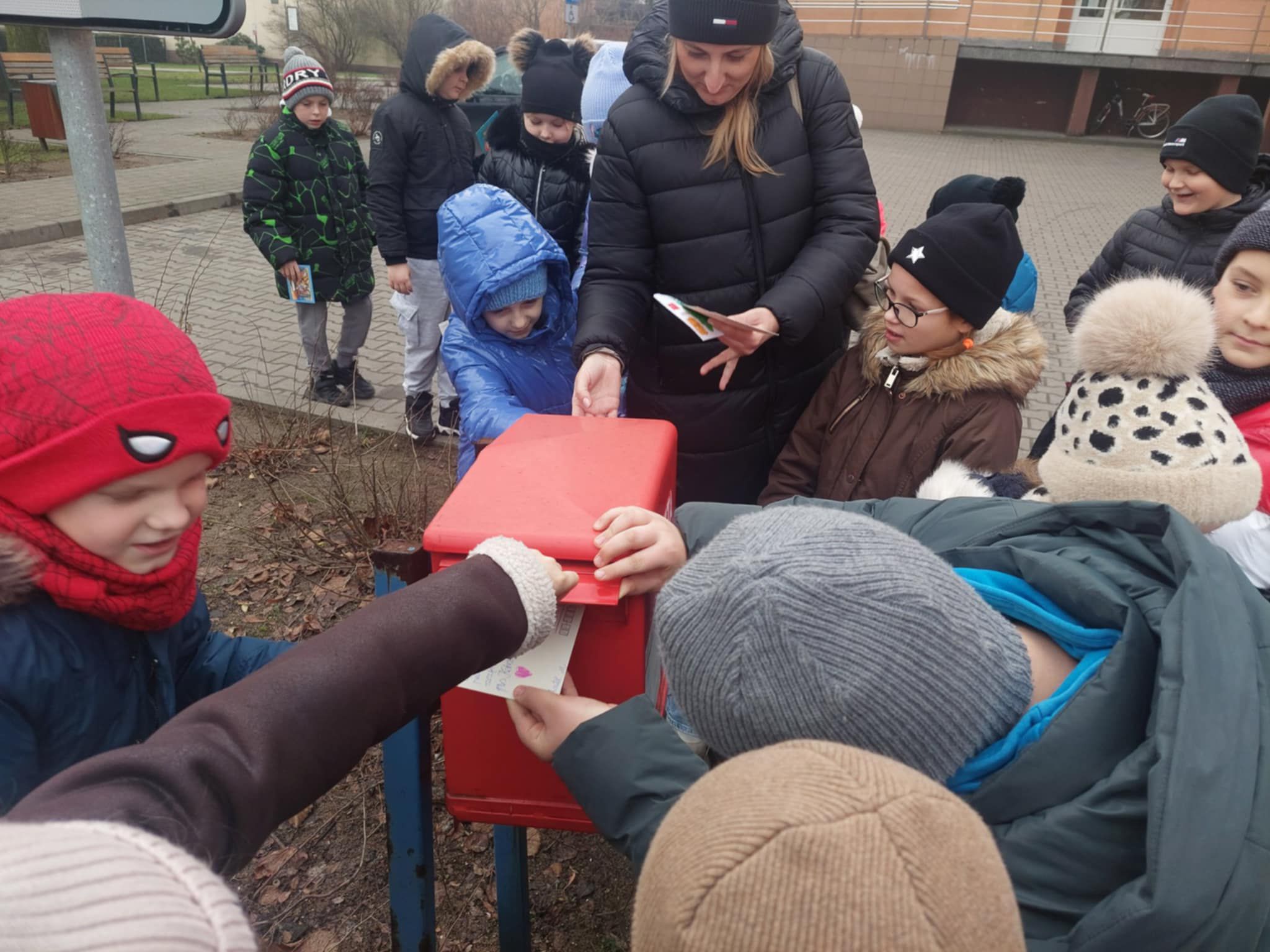 W dniu 17 grudnia klasa 2 udała się na wycieczkę do urzędu pocztowego. Celem wyjścia było zapoznanie się z pracą poczty oraz nauczenie się, w jaki sposób poprawnie wysyła się kartkę z życzeniami. Po przybyciu na miejsce pani pracująca na poczcie opowiedziała nam, jakie usługi oferuje urząd pocztowy. Dowiedzieliśmy się, jak wygląda droga listu od nadawcy do adresata oraz jakie są rodzaje przesyłek. Następnie obejrzeliśmy okienko pocztowe, skrzynkę na listy oraz znaczki. Kolejnym etapem wycieczki było samodzielne wysyłanie kartek z życzeniami do rodziców. Każdy z nas wcześniej przygotował kartkę, a na miejscu uczyliśmy się poprawnie naklejać znaczek i wrzucać kartkę do skrzynki pocztowej. Było to bardzo ciekawe i sprawiło nam dużo radości.