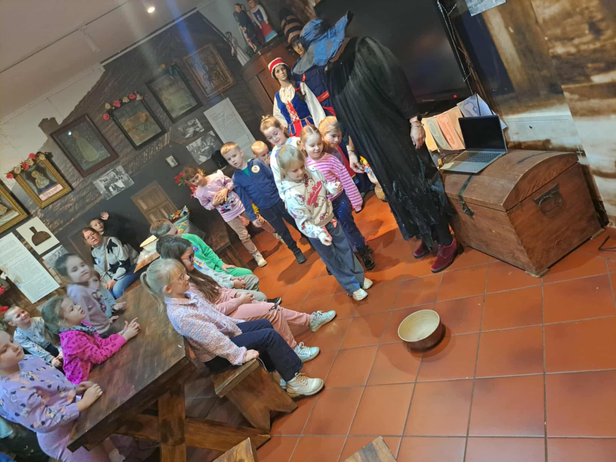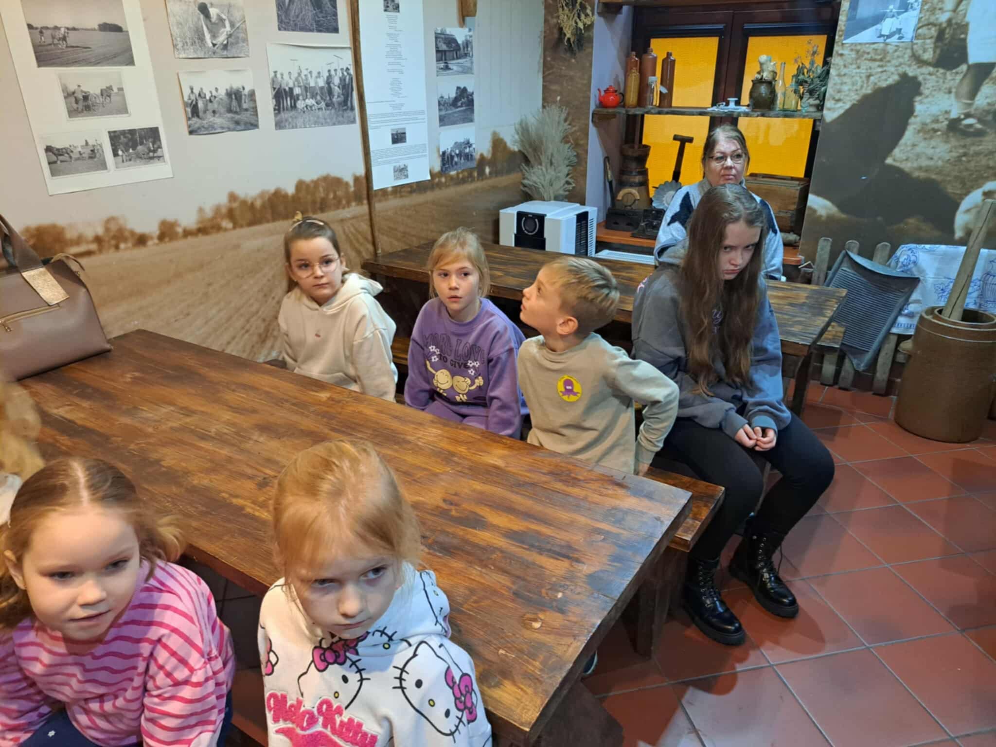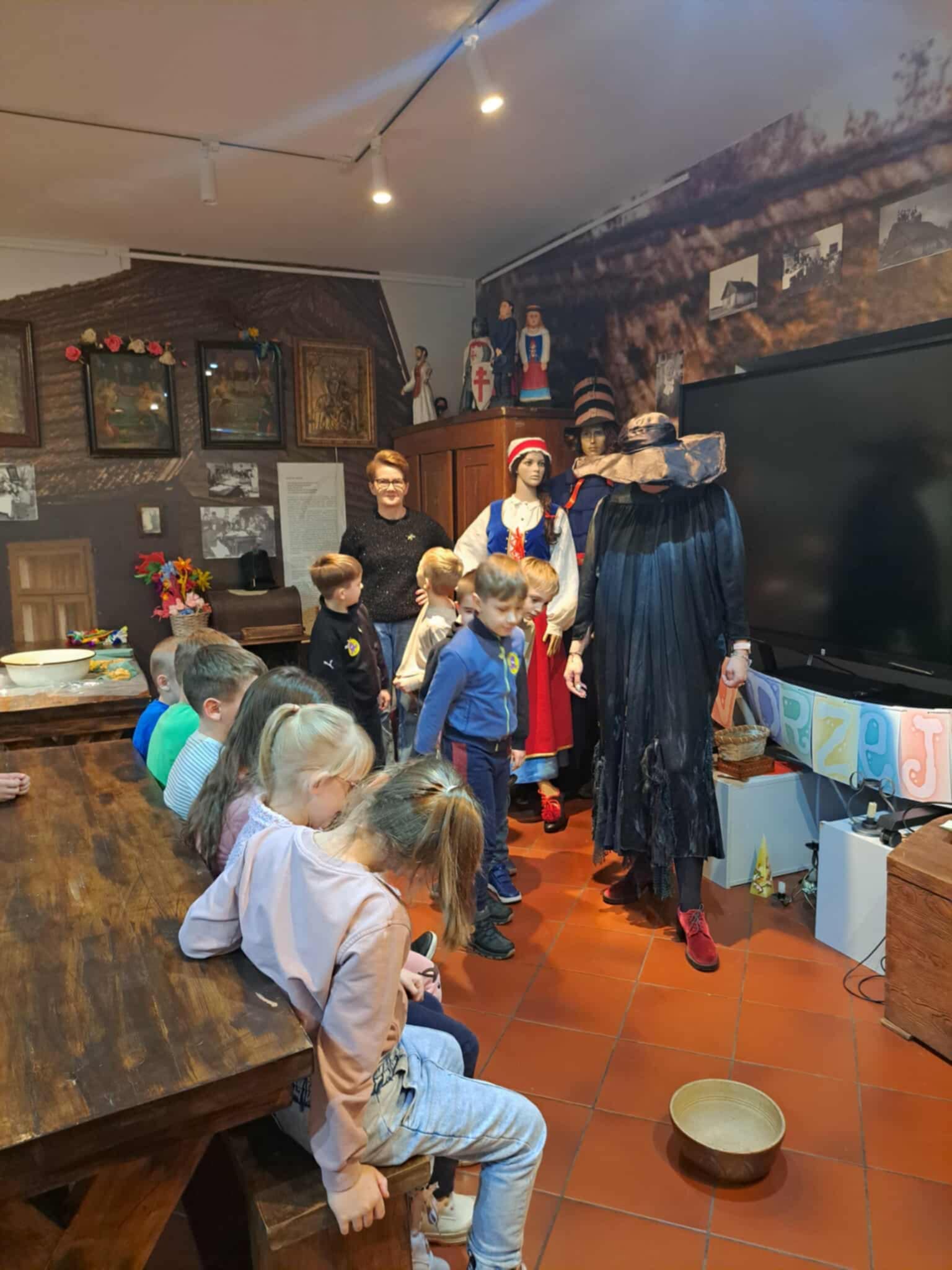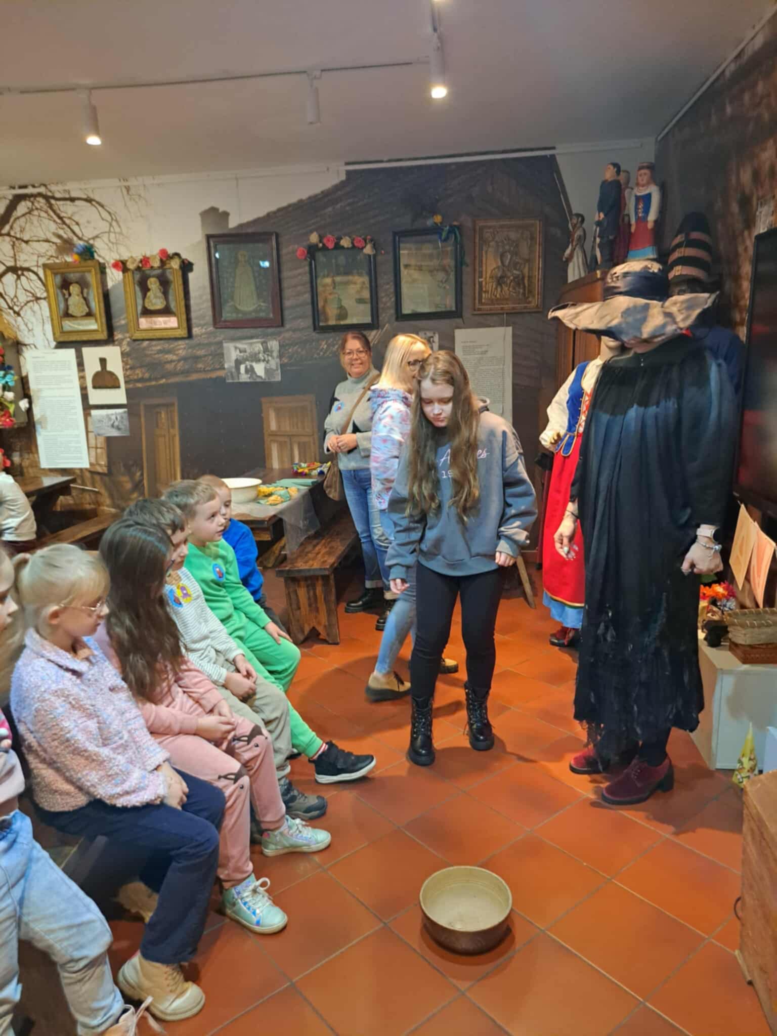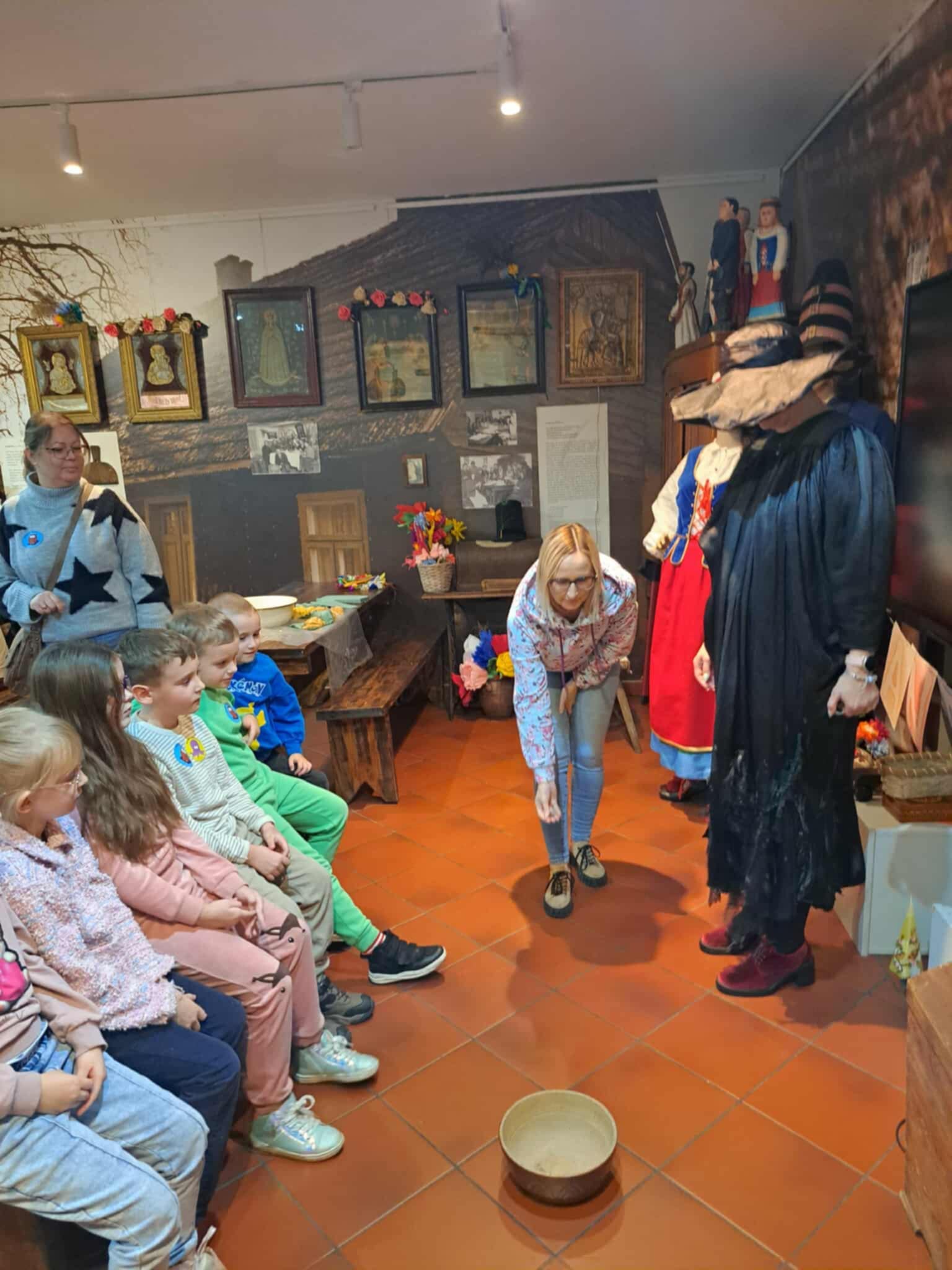 Dnia 18 listopada 2025 roku pierwszoklasiści wraz z wychowawczyniami: panią Anitą Okońską i panią Anną Witkowską oraz z panią Eweliną Filipską wybrali się na wycieczkę do Muzeum Ziemi Dobrzyńskiej w Rypinie. Swoją wizytę dzieci rozpoczęły od spotkania z dyrektorem muzeum, który w ciekawy i przystępny sposób przedstawił uczniom różne ciekawostki historyczne. Następnie pierwszaki wzięły udział w zajęciach poświęconych wróżbom i tradycjom andrzejkowym. Pani prowadząca w interesujący sposób opowiadała o dawnych zwyczajach, a następnie zaprosiła dzieci do wspólnego wróżenia.