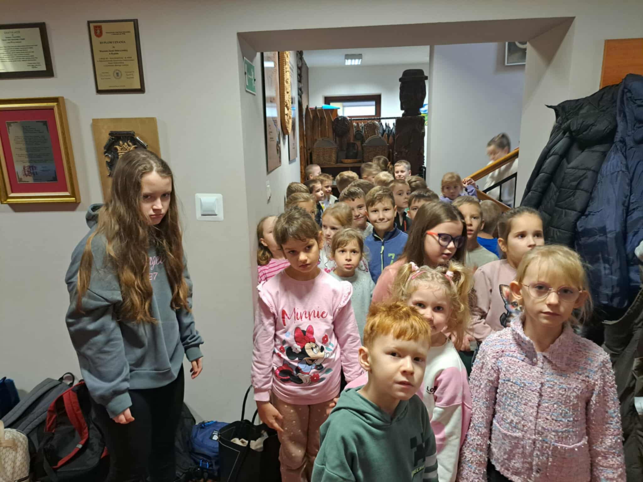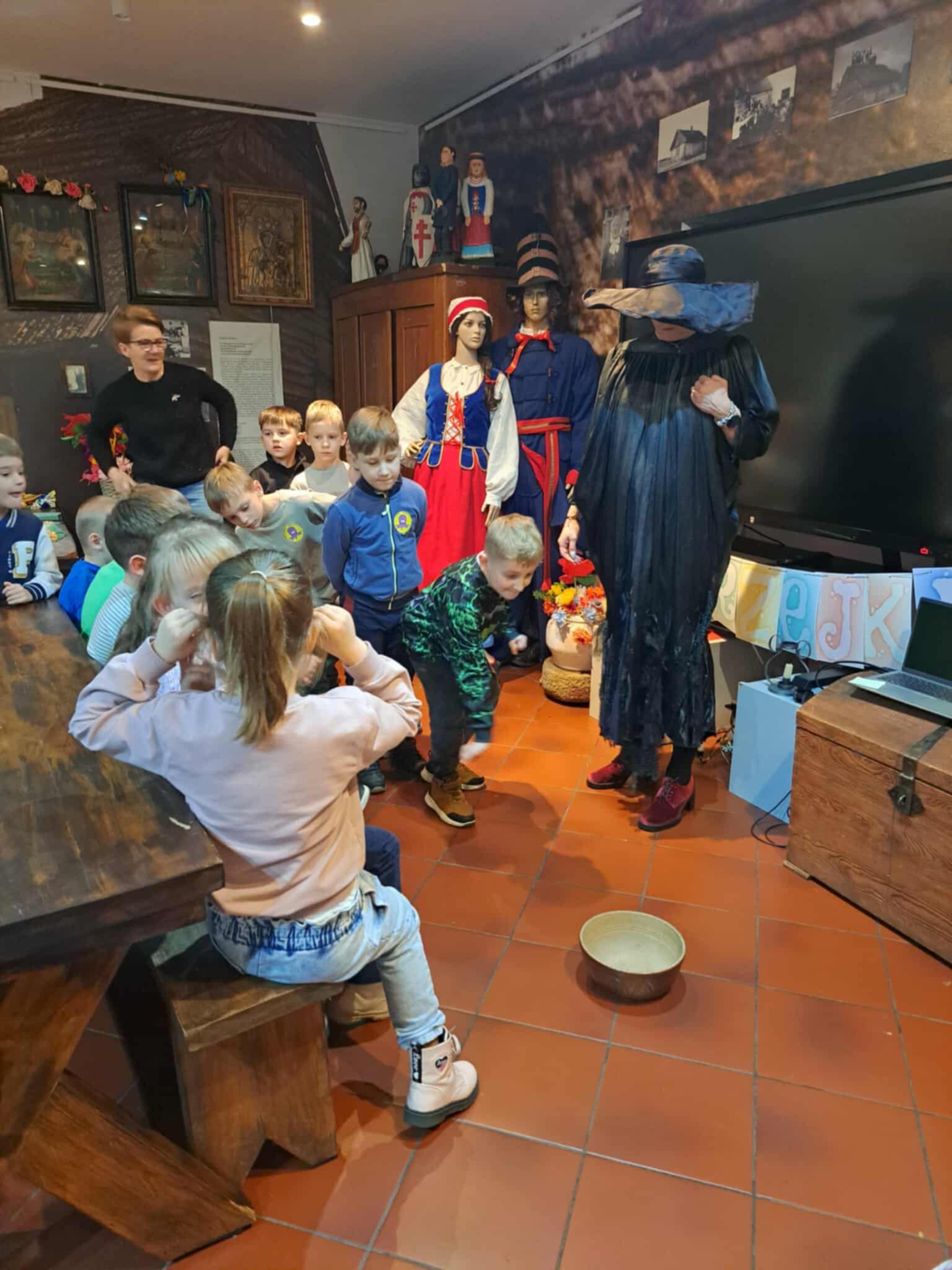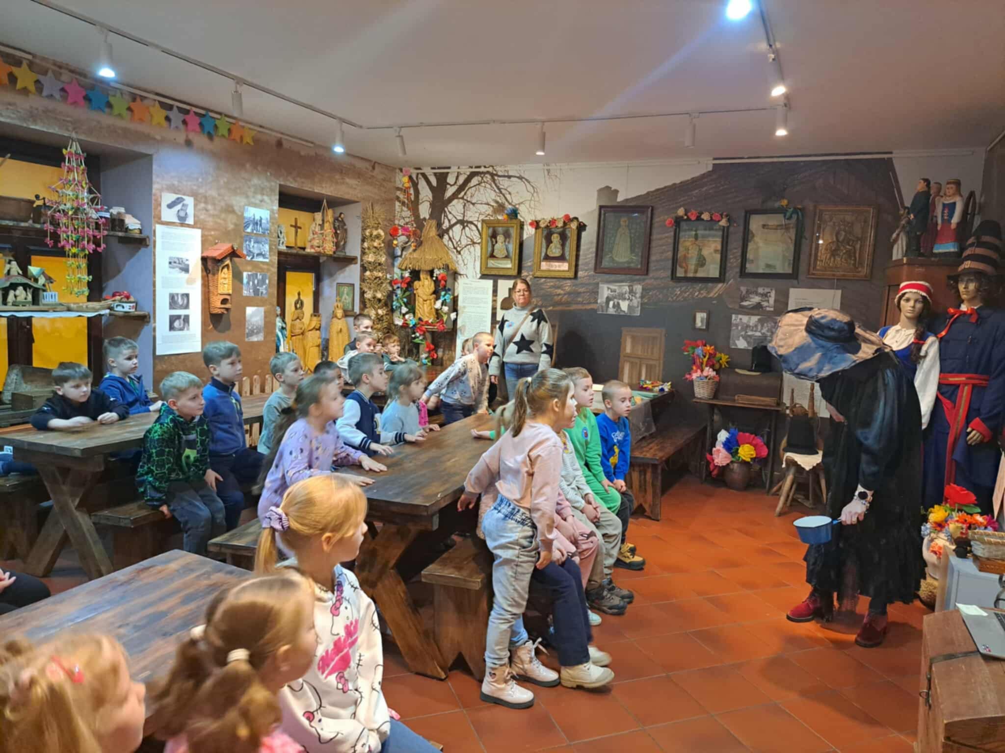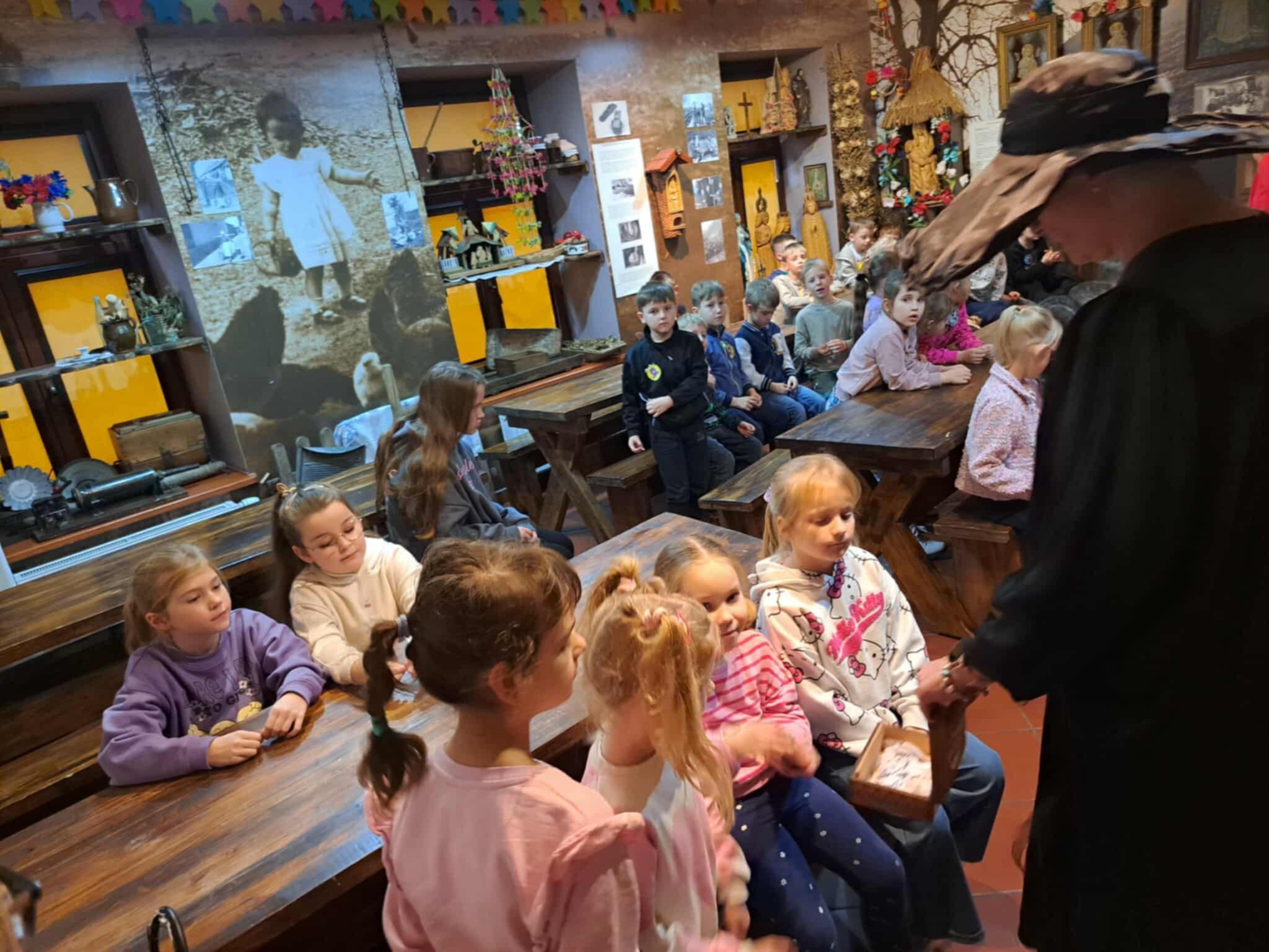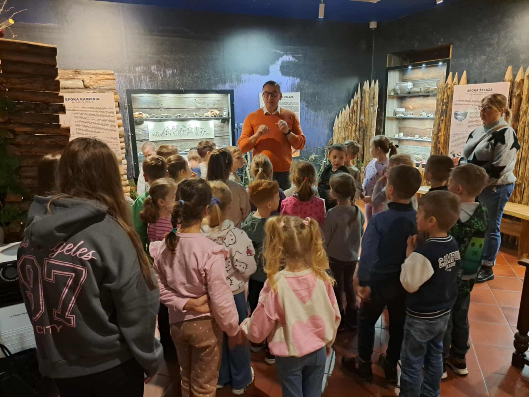 Dnia 18 listopada 2025 roku pierwszoklasiści wraz z wychowawczyniami: panią Anitą Okońską i panią Anną Witkowską oraz z panią Eweliną Filipską wybrali się na wycieczkę do Muzeum Ziemi Dobrzyńskiej w Rypinie. Swoją wizytę dzieci rozpoczęły od spotkania z dyrektorem muzeum, który w ciekawy i przystępny sposób przedstawił uczniom różne ciekawostki historyczne. Następnie pierwszaki wzięły udział w zajęciach poświęconych wróżbom i tradycjom andrzejkowym. Pani prowadząca w interesujący sposób opowiadała o dawnych zwyczajach, a następnie zaprosiła dzieci do wspólnego wróżenia.