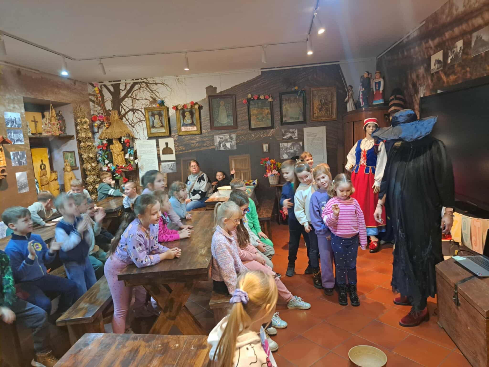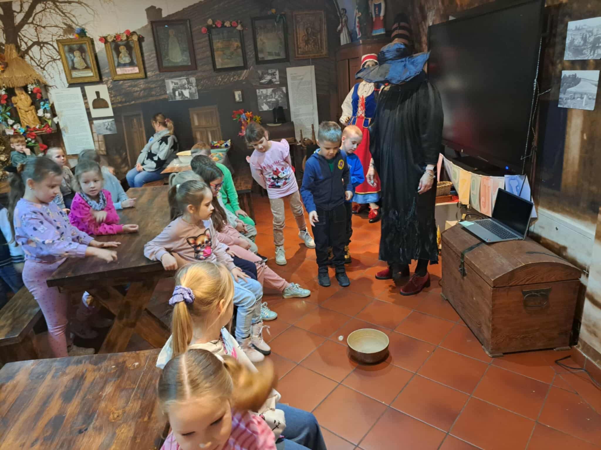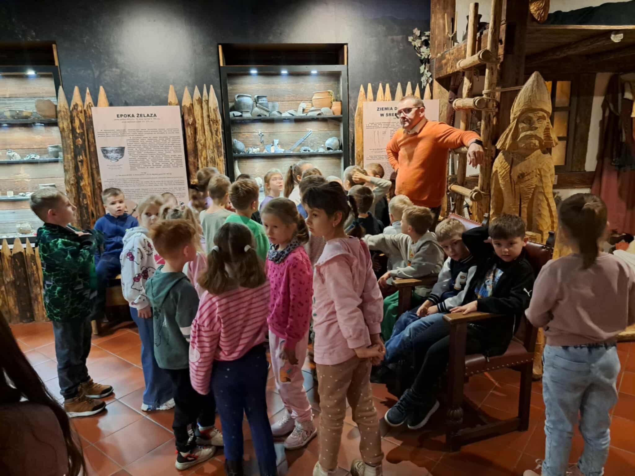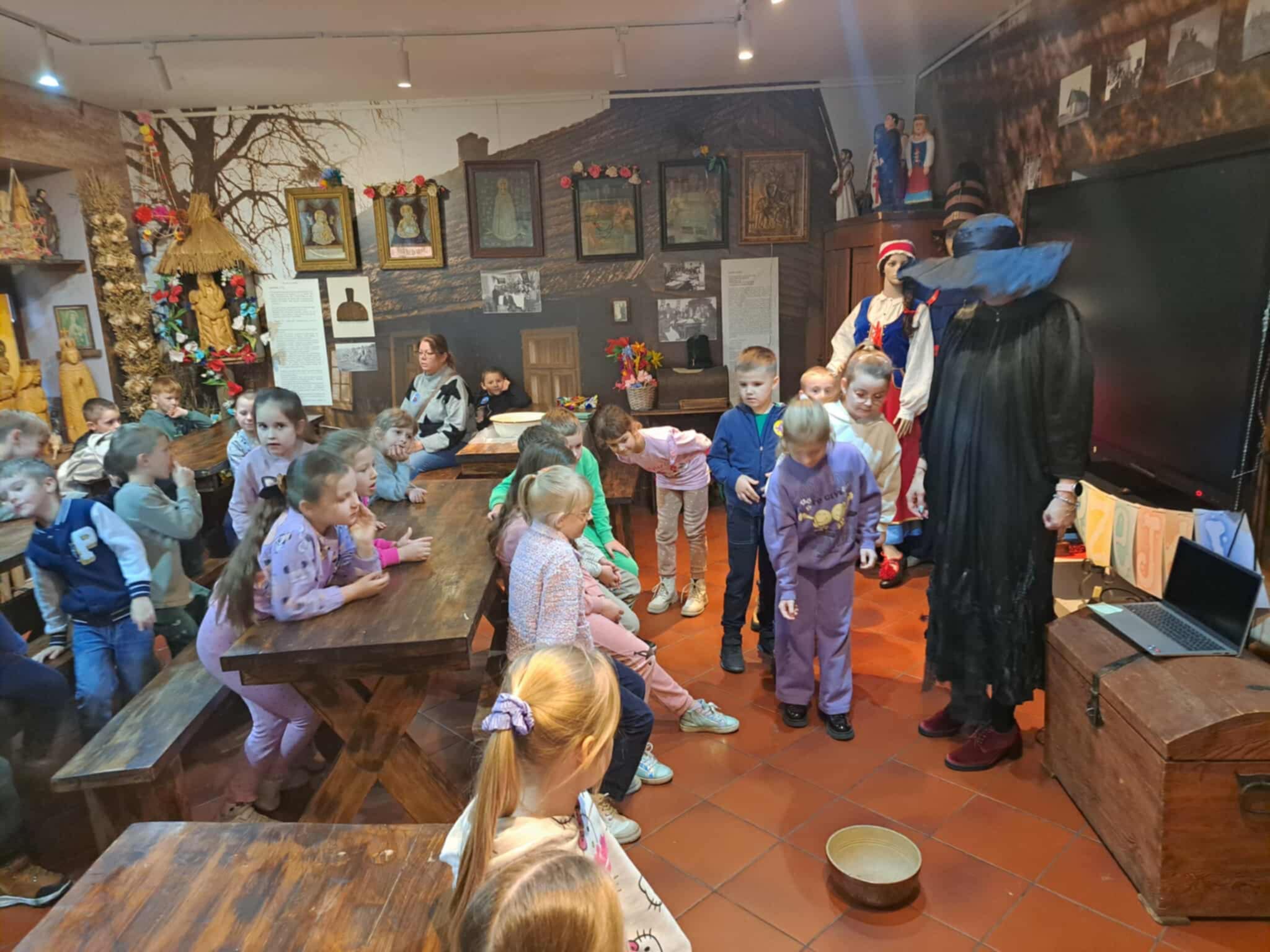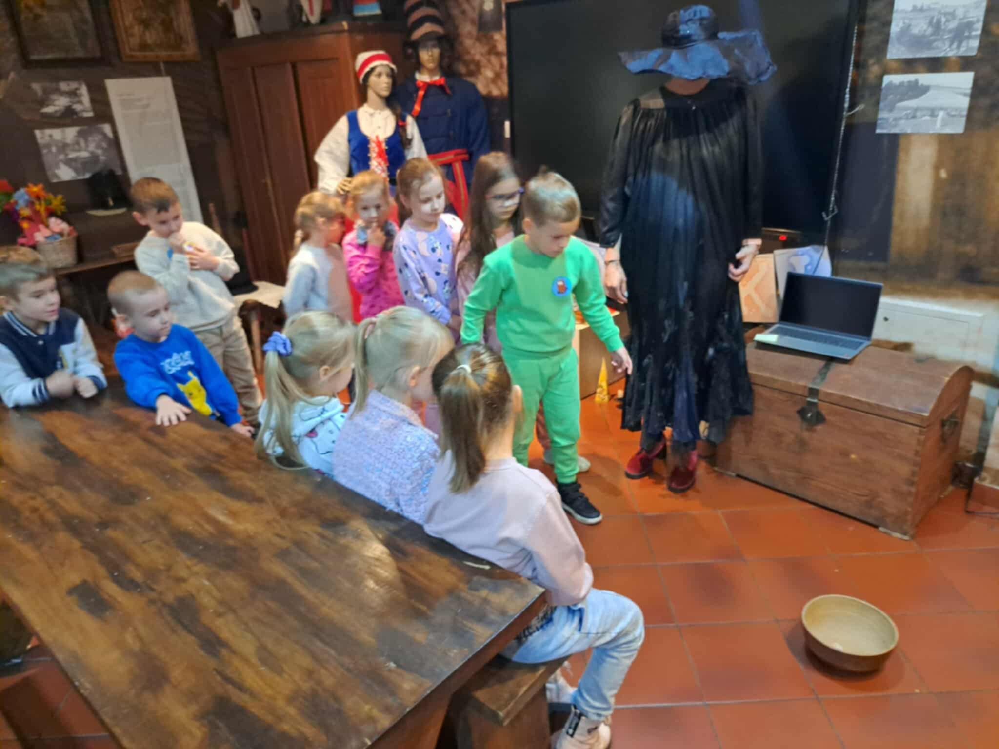 Dnia 18 listopada 2025 roku pierwszoklasiści wraz z wychowawczyniami: panią Anitą Okońską i panią Anną Witkowską oraz z panią Eweliną Filipską wybrali się na wycieczkę do Muzeum Ziemi Dobrzyńskiej w Rypinie. Swoją wizytę dzieci rozpoczęły od spotkania z dyrektorem muzeum, który w ciekawy i przystępny sposób przedstawił uczniom różne ciekawostki historyczne. Następnie pierwszaki wzięły udział w zajęciach poświęconych wróżbom i tradycjom andrzejkowym. Pani prowadząca w interesujący sposób opowiadała o dawnych zwyczajach, a następnie zaprosiła dzieci do wspólnego wróżenia.