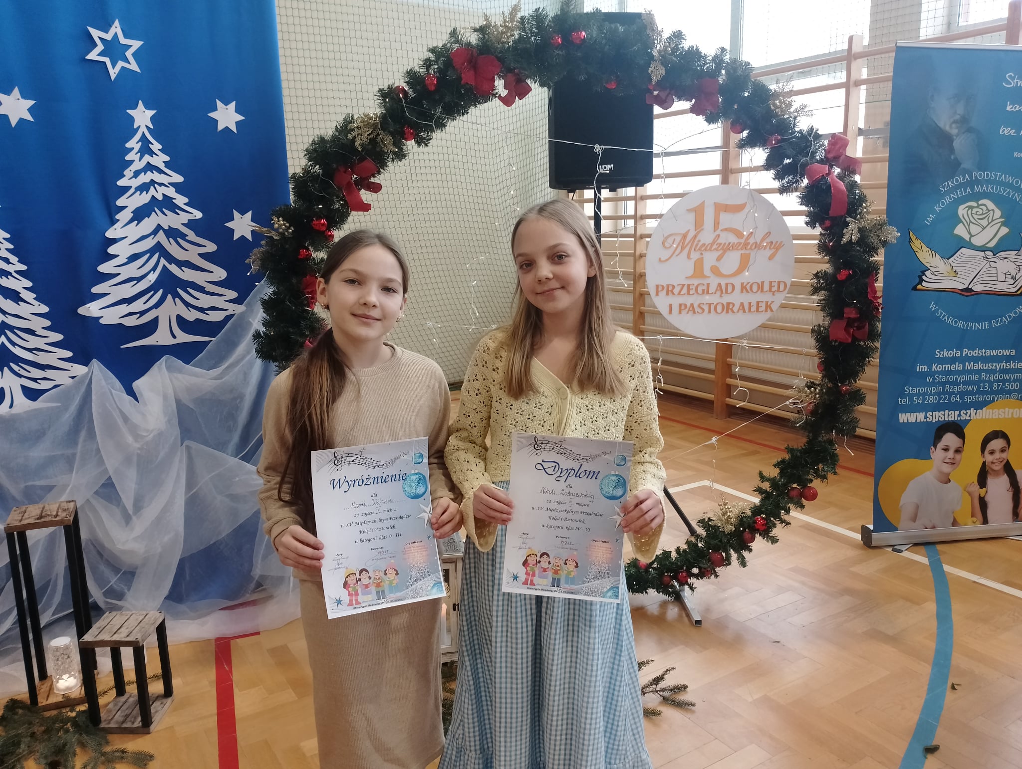 W dniu 29.01.2026 w Szkole Podstawowej im. Kornela Makuszyńskiego w Starorypinie Rządowym, odbył się XV Międzyszkolny Przegląd Kolęd i Pastorałek, który zgromadził kilkudziesięciu wykonawców. Naszą szkołę reprezentowały:
