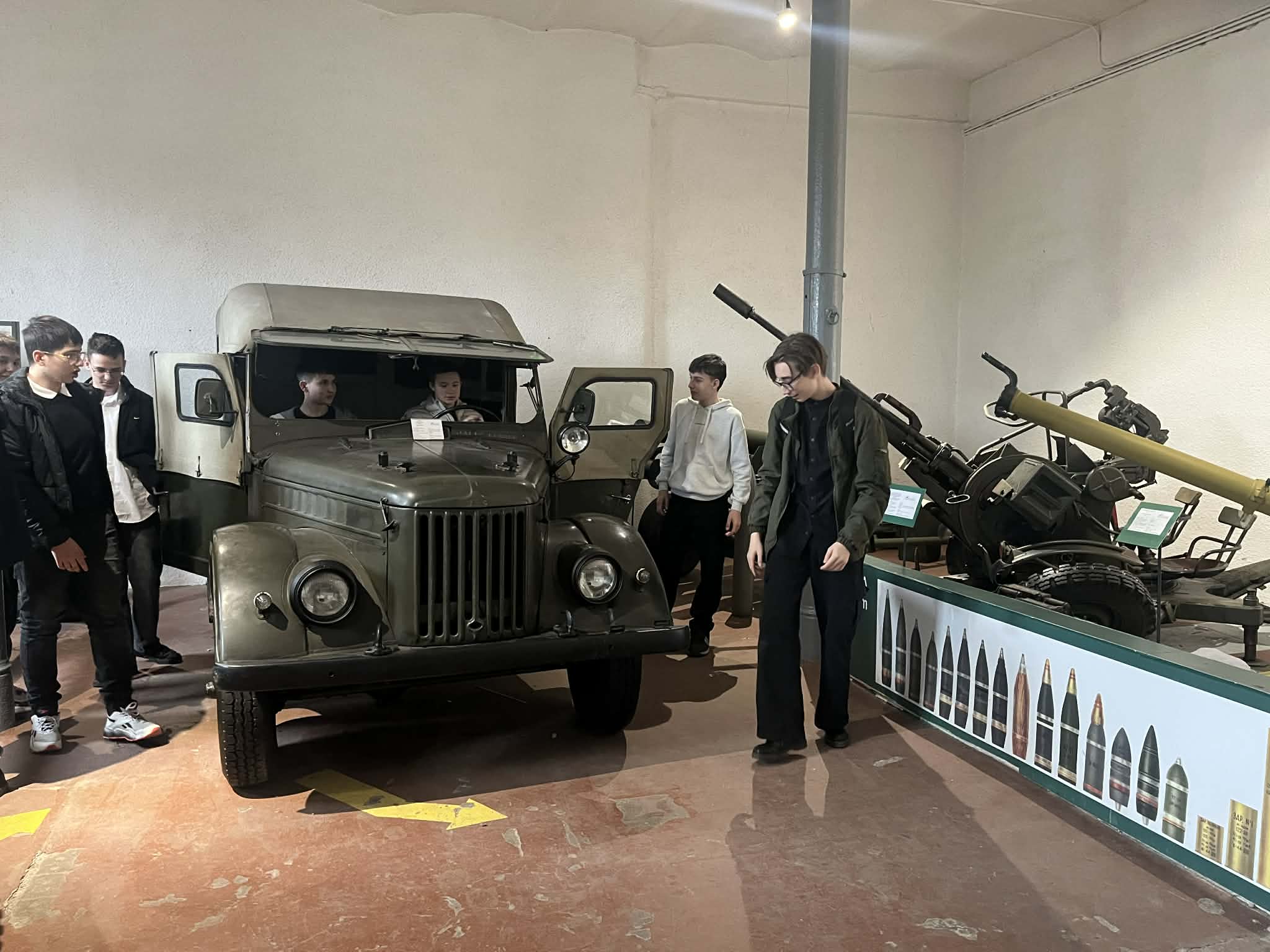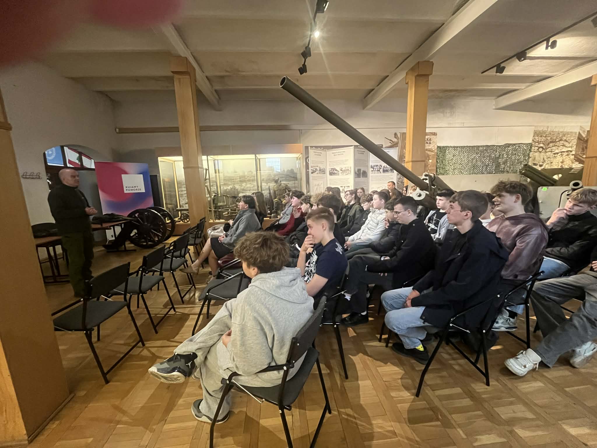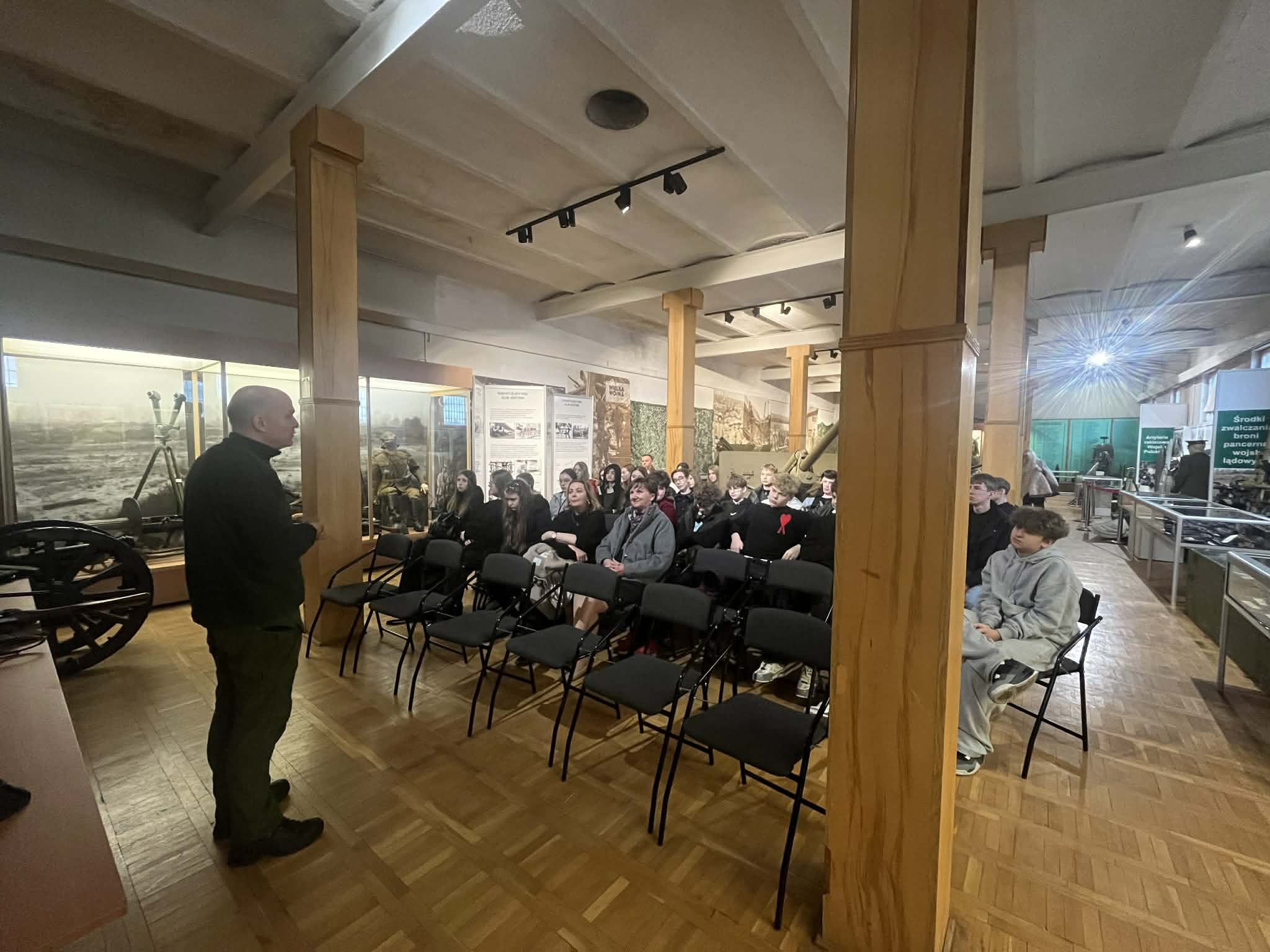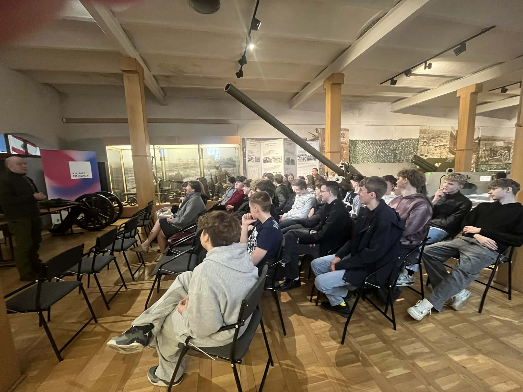 Następnie udaliśmy się do Muzeum Artylerii Wojska Polskiego, Oddział w Toruniu. Uczniowie mieli możliwość poznania bogatych zbiorów Muzeum, dotyczących historii militarnej. Przewodnicy w ciekawy sposób przekazywali fascynujące historie dotyczące I i II wojny światowej. Dodatkowym atutem była nie tylko możliwość podziwiania zgromadzonych eksponatów, ale też możliwości praktyczne. Uczniowie wsiadali do wozów bojowych, czołgów, czy motocykli wojskowych. Pasjonaci militariów mieli zapewne ciekawe doświadczenia.